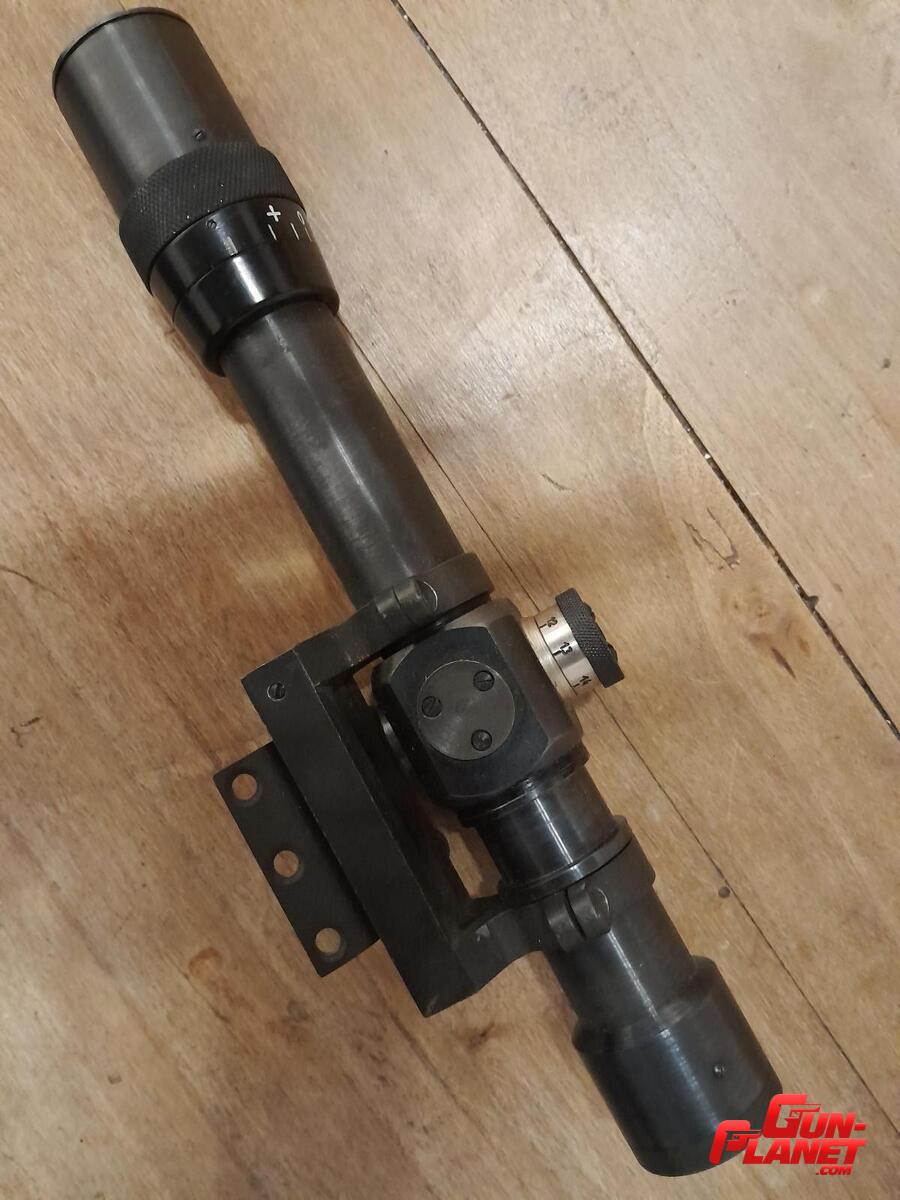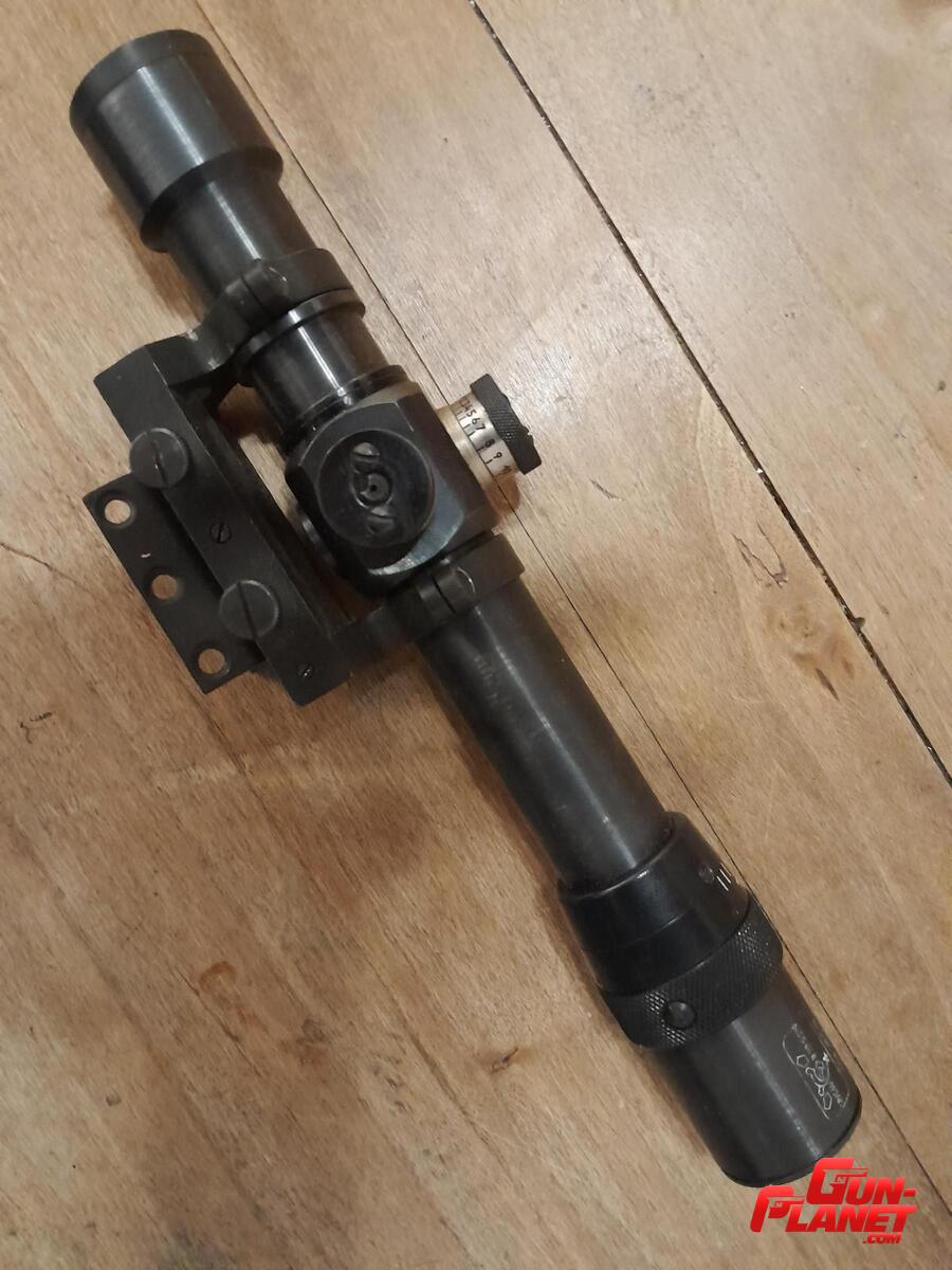 Reproduccion exacta coleccionable (corta tirada hecha en ucrania año 2000 no se volvio a hacer ni se hara..) de la rara mira PE de mosin nagant sniper primer modelo serie sovietico / sniper finlandes m39sov Aumento. 4X corrector de dioptrias reticulo 1 con montaje simil de epoca con tornillos de instatalacion y mecha para roscar accion redonda o exagonal , funda reproduccion exacta de la original.