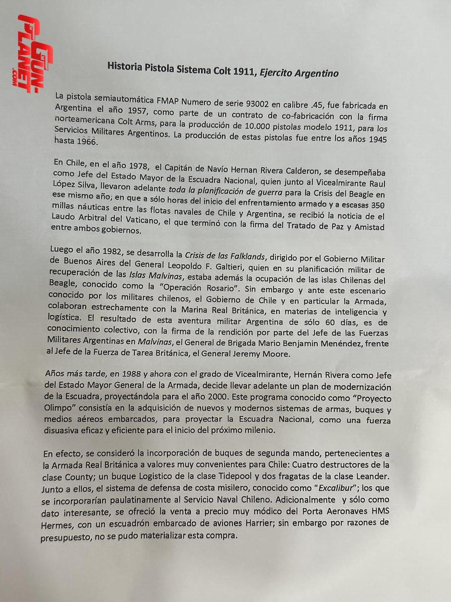 Pistola DGFM (sistema colt) Ejército Argentino, calibre 45 acp
