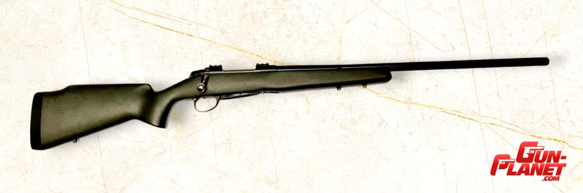 De repetición, culata sintética verde texturada, cañon flotante semi bull barrel acanalado pavonado. Largo del cañón: 26¨. Cañón roscado. Cargador destachable. Disparador regulable. Incluye bases weaver.