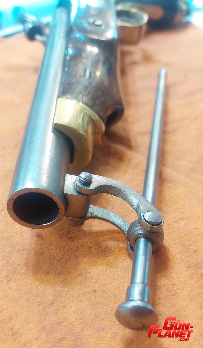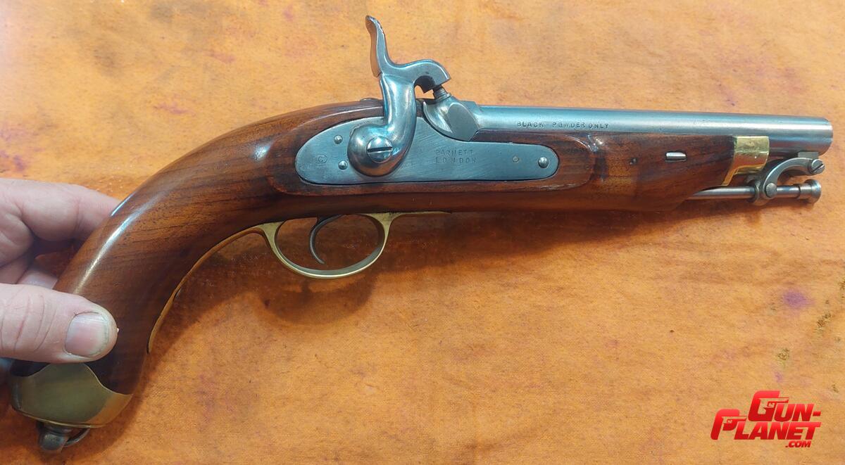 Fabricada por muchas empresas de replicas por su fama, la prestigiosa pistola de avancarga Enfield Barnett, de landres fue utilizada tanto por la marina como por la caballería.