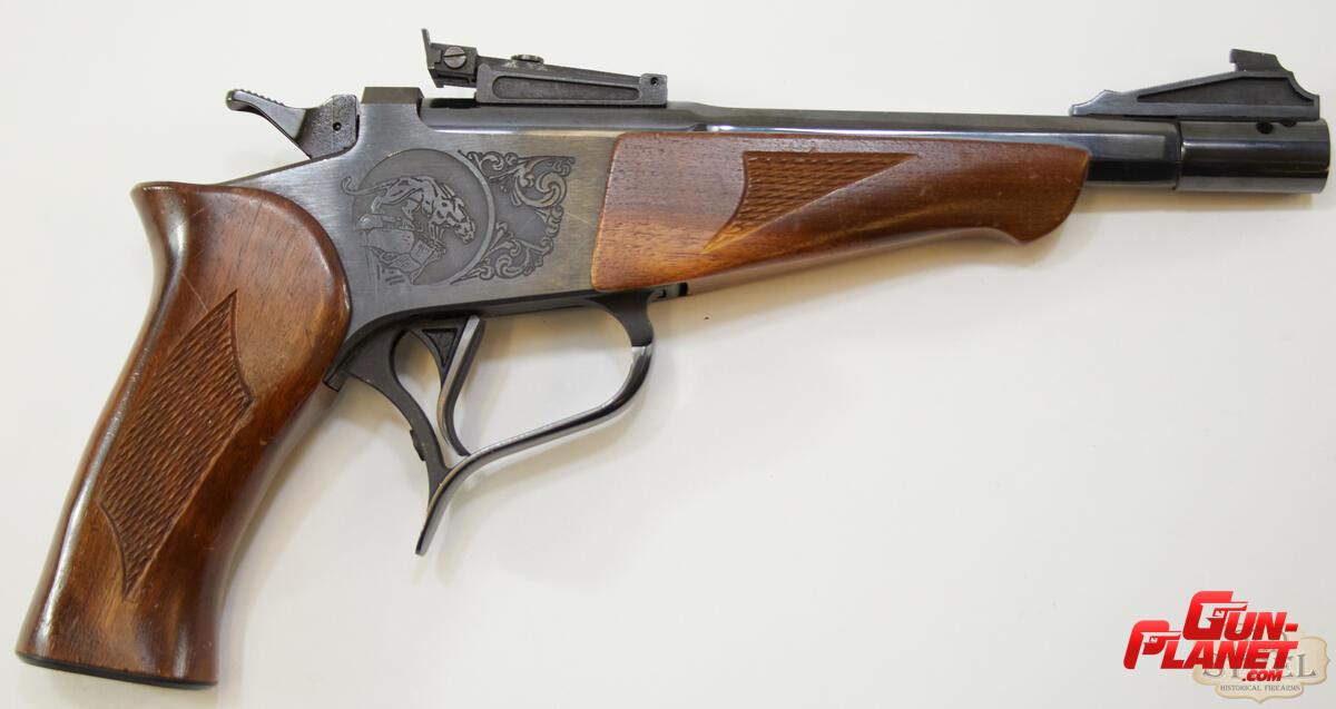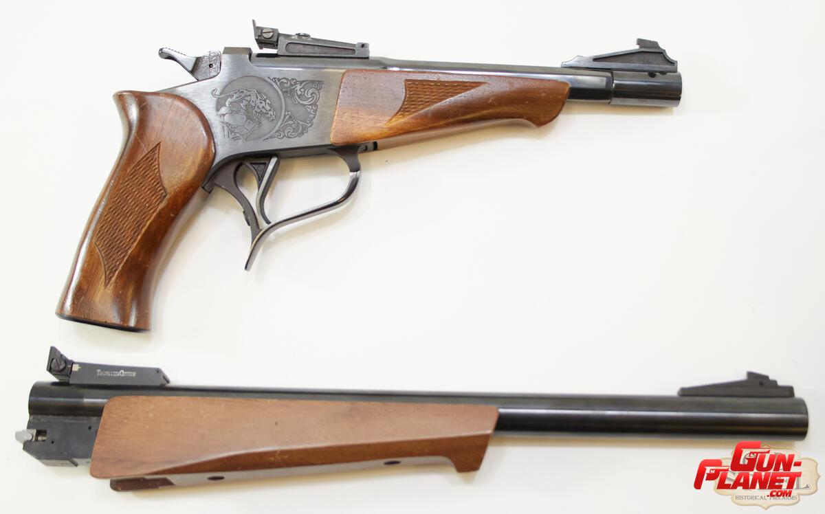 Up for auction is a Thompson Center contender chambered in 44 Magnum. This pistol comes with an extra barrel in 44 Rem Mag. The shorter 44 Magnum barrel measures 7 inches and the 44 rem mag barrel measures 14 inches, both have sharp reflective rifling. The pistol features beautiful engravings and hand checkered grips. The trigger is nice and crisp with a single stage pull. The grips are in good condition and are made to give a right handed shooter a really sturdy grip. A must have for any fans of this iconic single shot pistol.