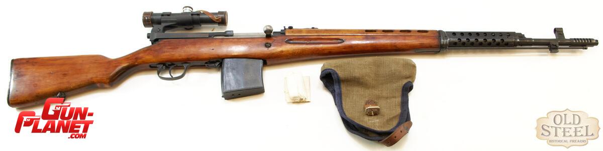 Up for auction is a Soviet SVT 40 chambered in 7.62x54R. The date of manufacture is 1940, making this a first year of production rifle. This iconic russian rifle was one of the very first semi auto rifles that the soviets issued in semi-large quantities. The rifle was originally intended to replace the mosin nagant as the standard issue rifle for the russian military, but was eventually passed off due to it being too costly to manufacture on such a large scale, making the few surviving examples of the SVT 40 and 38 quite rare. The rifle is exceptionally light for its size, being lighter than an M1 Garand despite being quite a bit longer. These rifles also are known to have a surprisingly light recoil for the 7.62x54R cartridge, being that the semi auto action absorbs most of the recoil. This particular example was made at the Izhevsk arsenal, and features a smooth action and crispy defined rifling with plenty of life left in it. The rifle sports an authentic 1941 dated russian scope, mounted on a repro scope mount, making this rifle into a sniper / DMR configuration, which was quite common during WW2. It also comes with a scope cover, and the Russian armory issues paperwork.