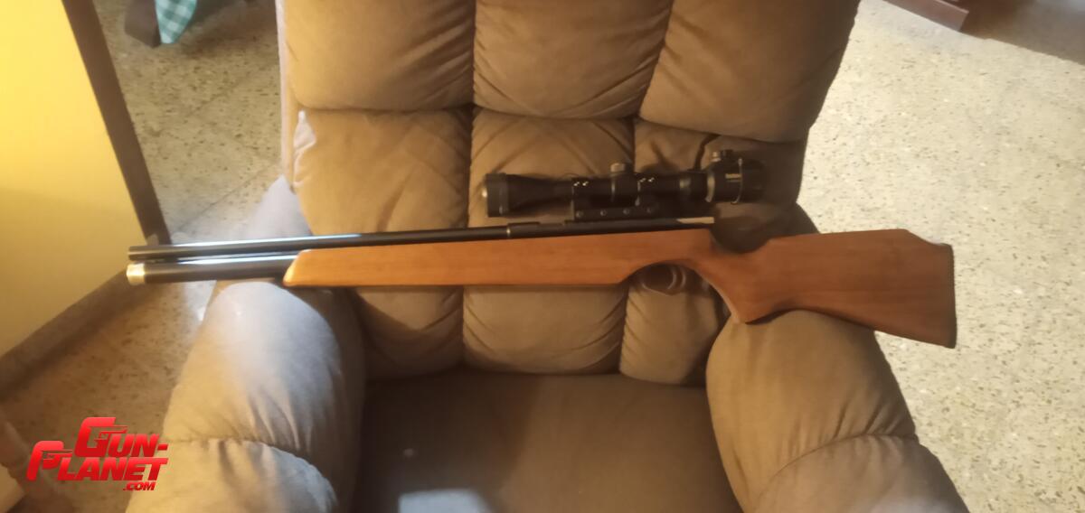 Esta sin usar solo calibrada la mira, va con la caja de 500 balines(250) , garrafa drago mira bushnel 3-9x40 retícula iluminado vendo o.permuto por arma de mi interes