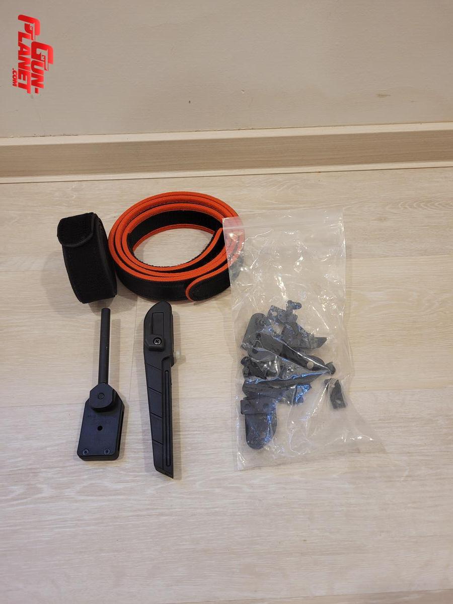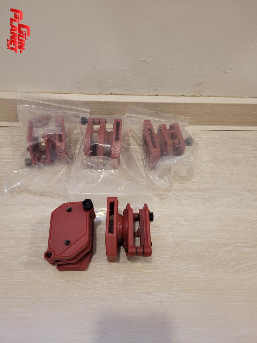 Mas 5 porta cargadores color rojo para cargadores doble hilera nuevos y una funda copia de la CR, también nueva, con los accesorios para adaptarlas a otras pistolas. Nunca fue usado.