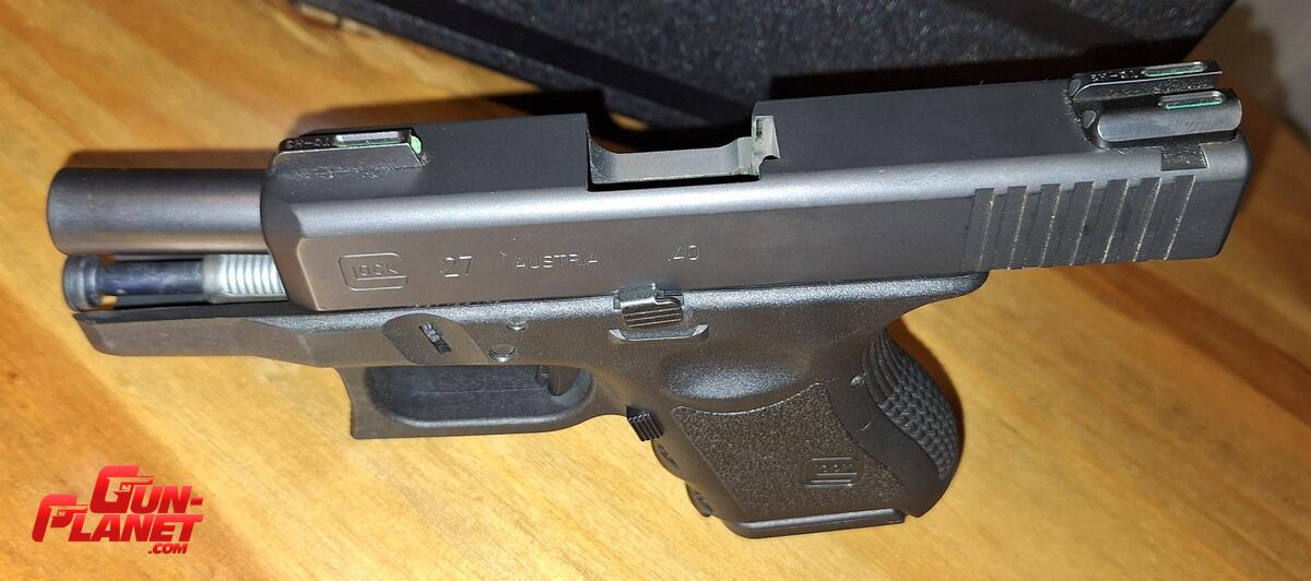 glock 27 gen 3 con accesorios 3 cargadores miras truglo de fibra y tritium funda interna con porta cargador de kydex 2 +2 originales glock linterna streamlight tlr6 con laser y funda interna de kydex marca tuster traída de eeuu la pistola tiene muy pocos disparos realizados esta igual a nueva