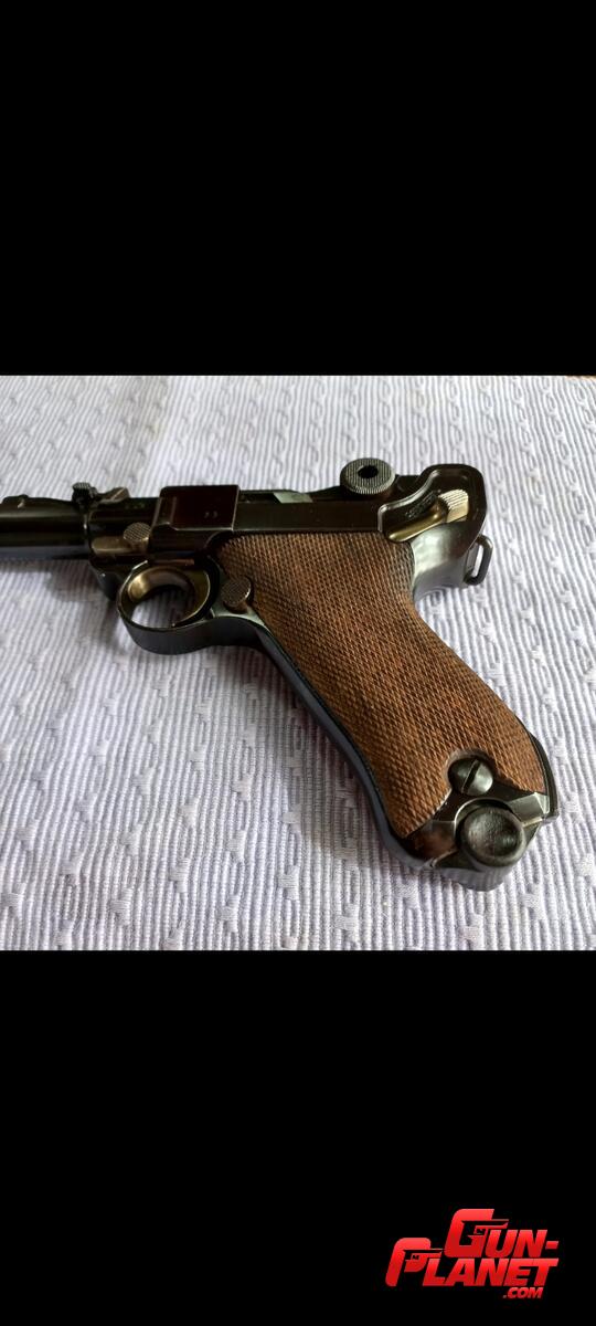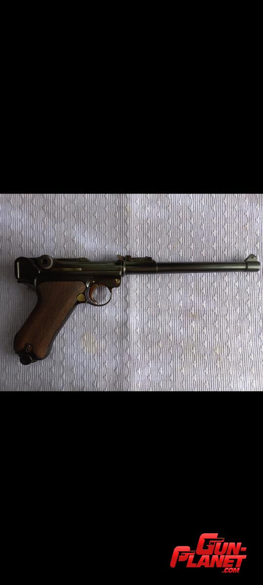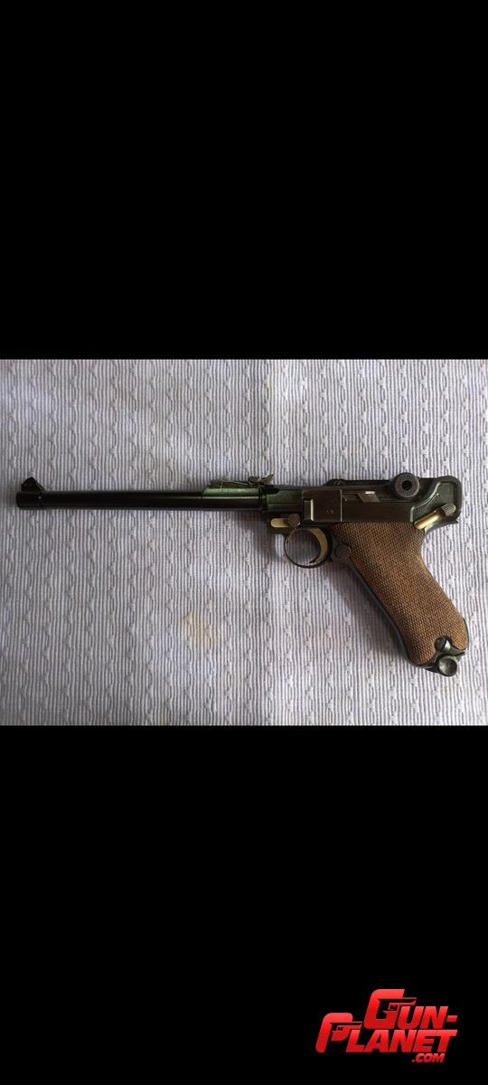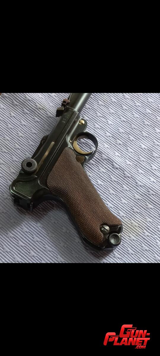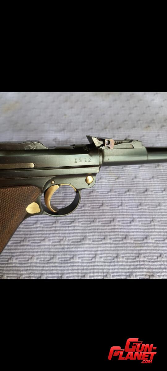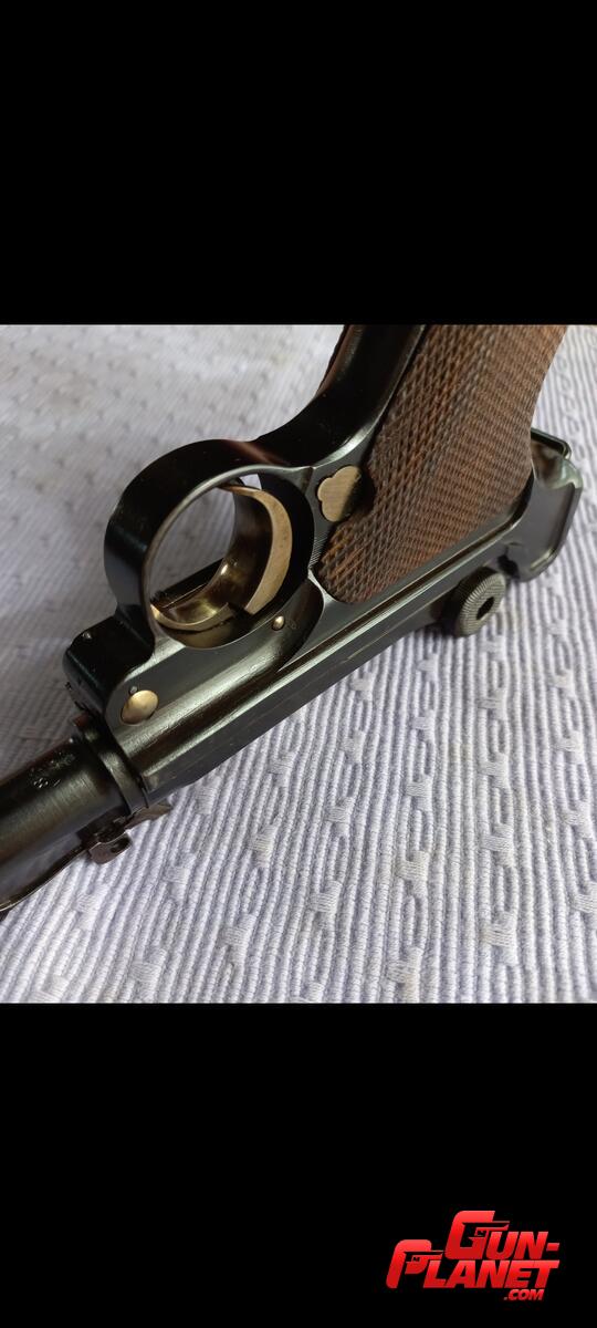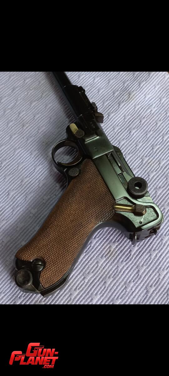 Pistola Parabelum de Artilleria en excelentes condiciones. Repavonada con fórmula original , conservando las líneas y marcas de fábrica.