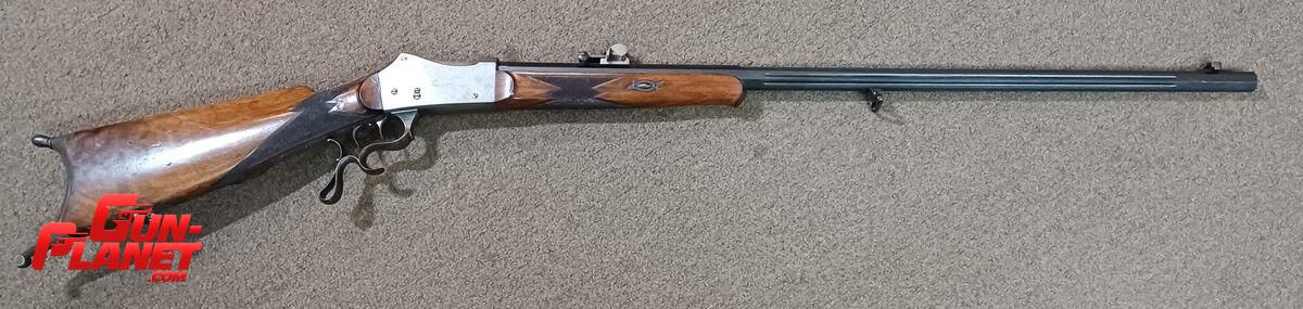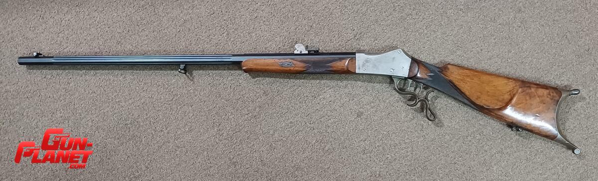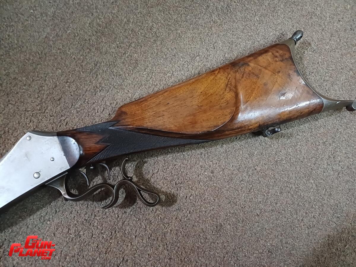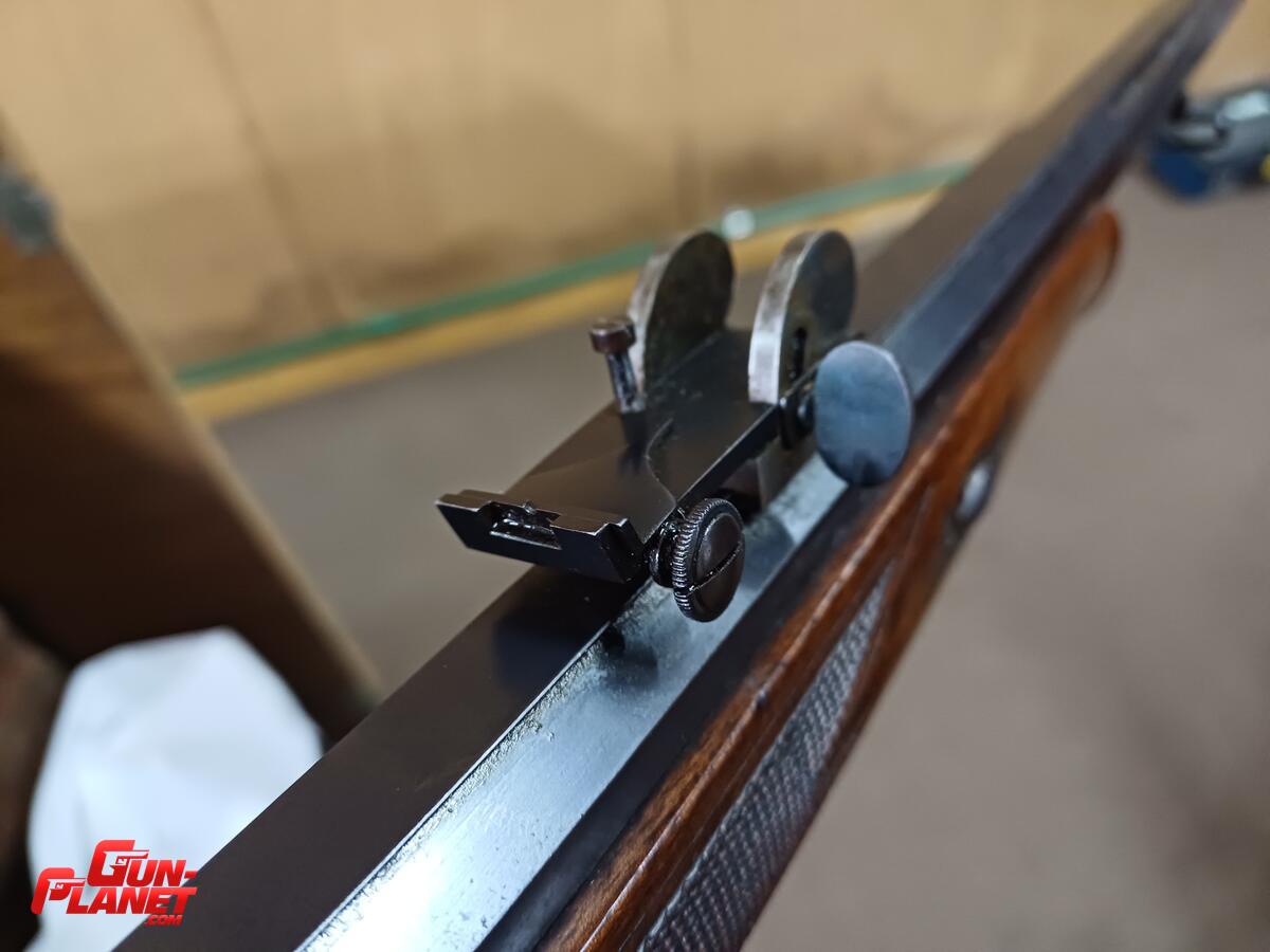 Antiguo fusil de tiro de precisión en impecable estado gatillo al pelo, cañon octogonal y fluted, miras regulables micrometricamente calibre 7.5 x 55 Swiss GP11