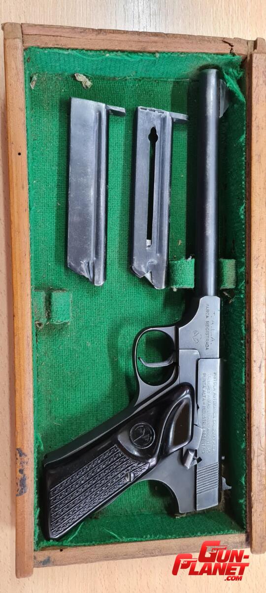 PISTOLA TALA CAÑON 7" - Frame acero con 2 cargadores y su caja original de madera, exelente estado