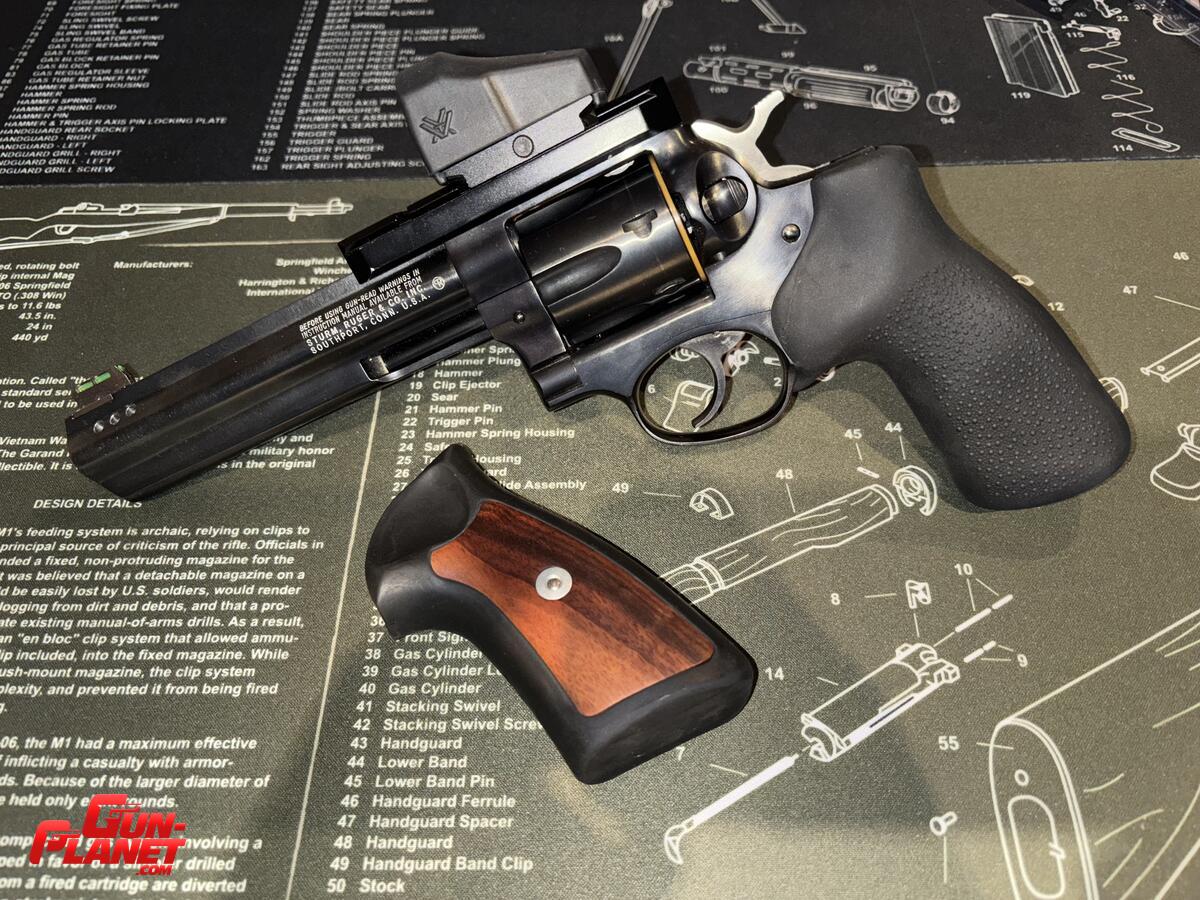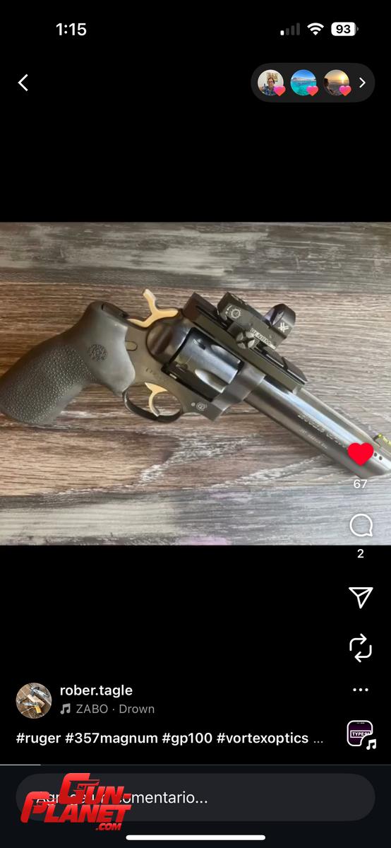 Revolver Ruger GP100 6” Pavon 357mg. Customizado por R. Tagle. Caño compensado y base para mira de punto. Alivianado con kit de resortes Wolff. Mira Vortex Venom. Guion Hi-viz, cachas Hogue y originales Ruger. Funda de Kydex de ToroHolster. Se entrega con todos los accesorios mas sus componentes originales. Impecable estado. u$d1900.- Tiene Cuim. Se entrega contra tramite urgente en Renar del TFABA o en la armeria del club.