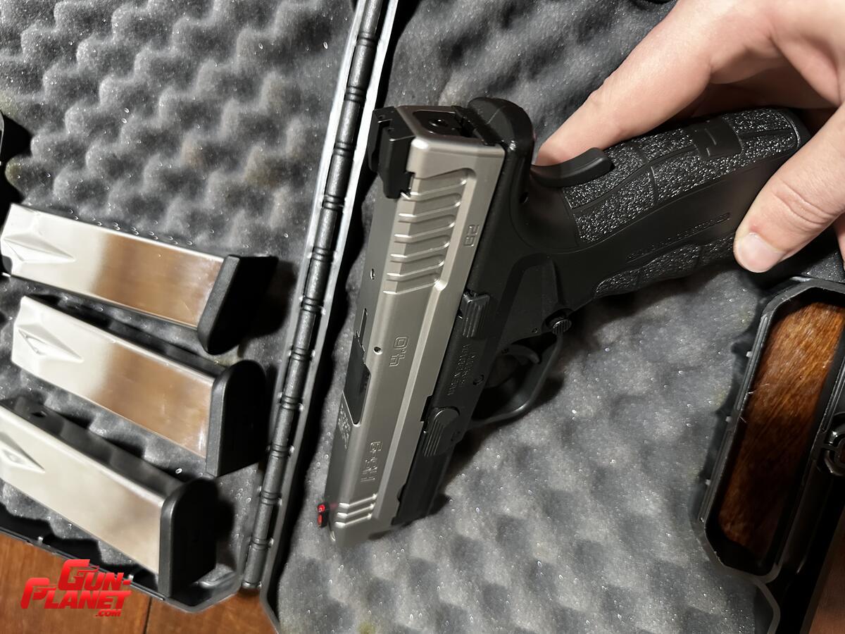 Pistola semi nueva. Con menos de 200 disparos. Trae 4 cargadores en acero inoxidable al igual que la corredera integra en acero inoxidable. Portafolio, elementos de limpieza y manual