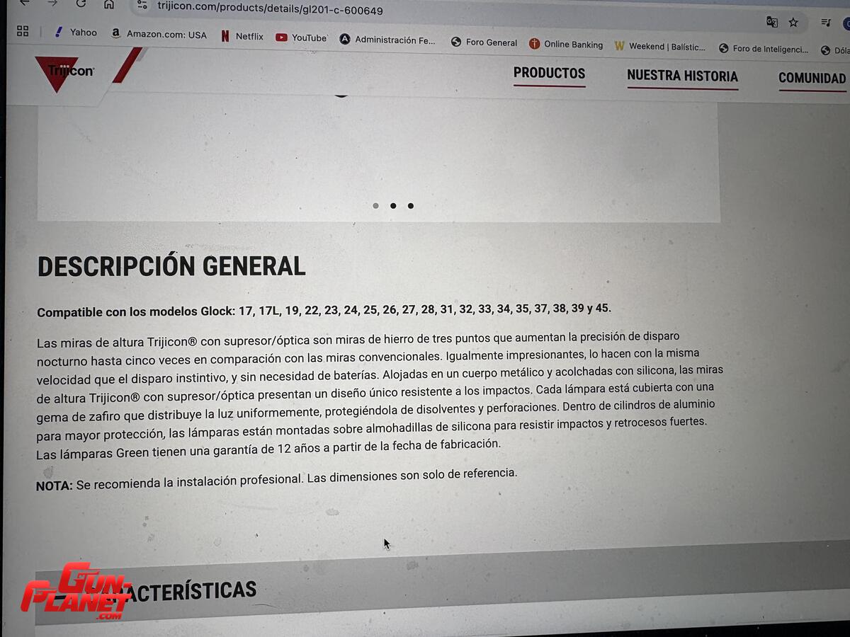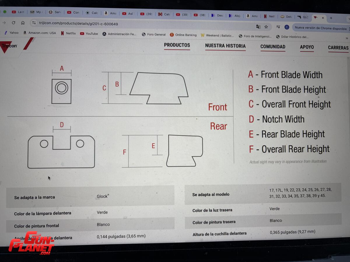 Compatible con los modelos Glock: 17, 17L, 19, 22, 23, 24, 25, 26, 27, 28, 31, 32, 33, 34, 35, 37, 38, 39 y 45.