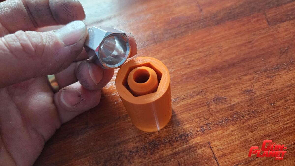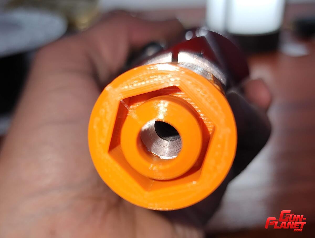 - Con encastre hexagonal para acoplar directamente al cono de aluminio original de Lee. Una vez colocado a presión es muy dificil sacar la pieza sin romperla, pero queda muy firme sin riesgo de que se caiga la tolva.