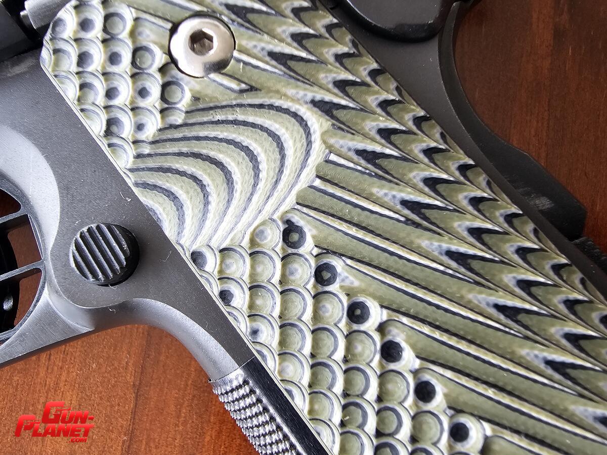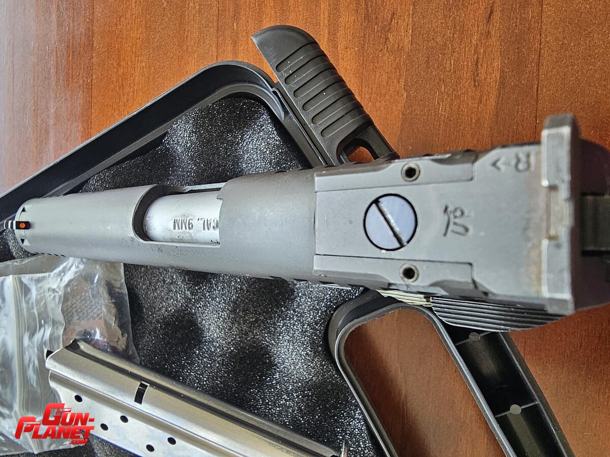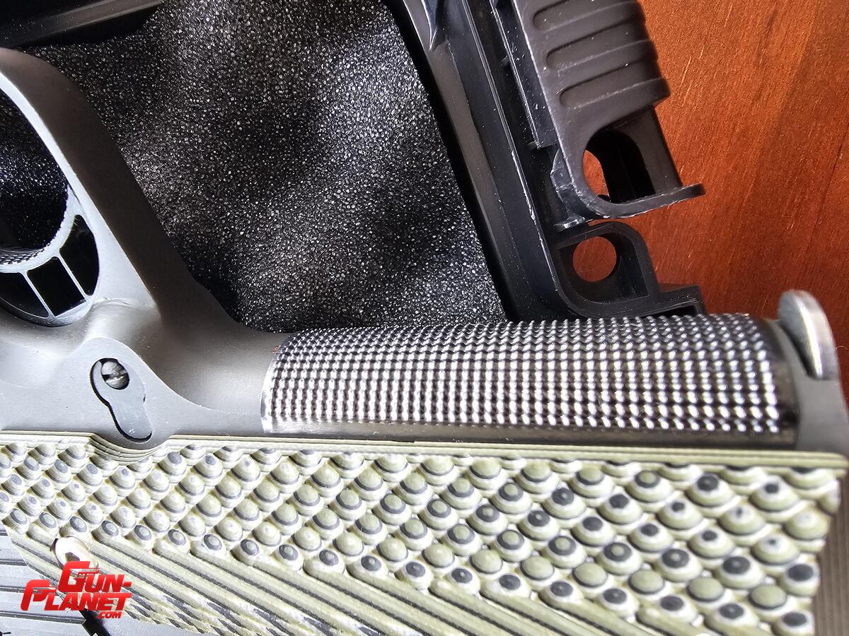 Pistola STI modelo Spartan V, cañón 5", mirsas regulables, dos cargadores, cachas custom de G10 con tornillos inox, segundas cachas originales de nogal, guia extendida, 2 cargadores, segrinado de la empuñadura Wilson Combat y gatillo de 3 Lbs. Casi sin uso, no se usó nunca para competencias IPSC. Ideal para empezar en categoría Classic.