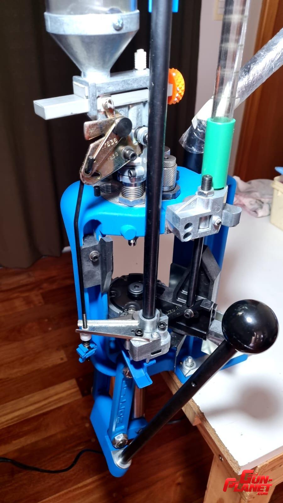 Maquina de recarga Dillon 650, con die Dillon para 9mm, alimentador de vainas Dillon, alimentador de puntas Sinardi, luz en el shell plate, 3 pescadores de fulminantes, kit de repuestos.