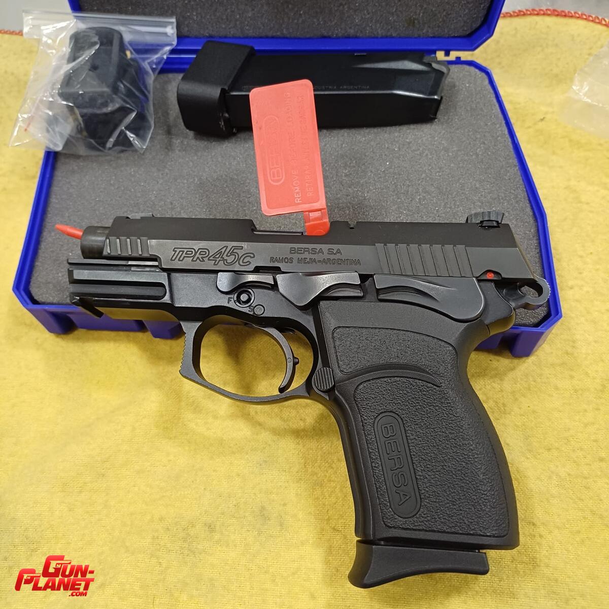 BERSA TPR 45 C, NUEVA SOLO TIROS DE PRUEBA EN FABRICA,DESPUES DE COLOCAR ,MIRAS FOTOLUMINISCENTES Y ALIVIANADOR DE COLA DISPARADOR,TODO HECHO EN BERSA.SE ENTREGA ADEMAS CON TAPA +2 (VON CUSTOM),PARA CADA CARGADOR,TODO EN ESE VALOR.TIENE CUIM.