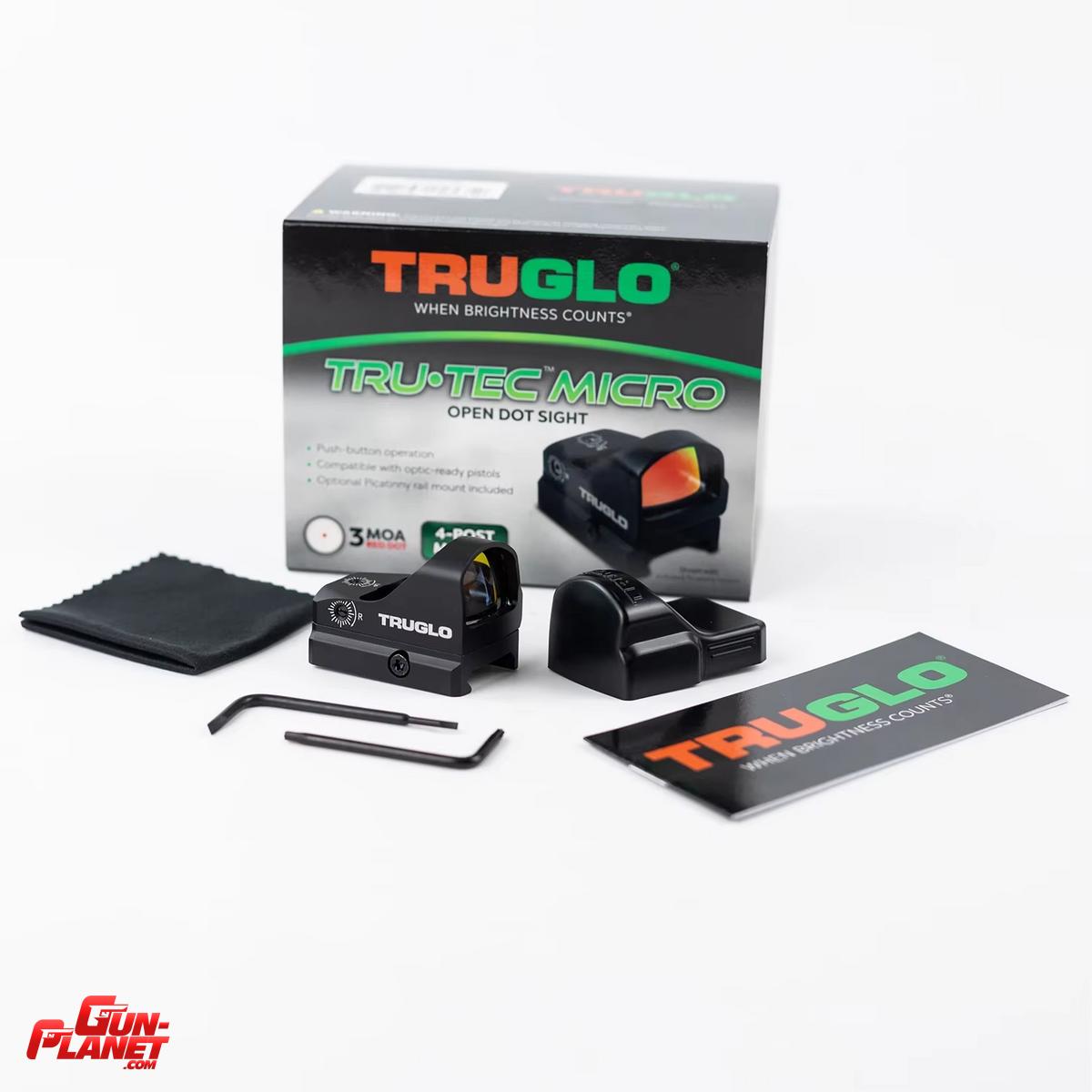 RETICULA DE PUNTOS DE 3 MOA: la mira Tru-Tec Micro Red Dot de TruGlo es ideal para aquellos cazadores y tiradores que no quieren un tubo y prefieren las reticulas de puntos clasicas. Funciona con una sola bateria de litio 3V-CR2032. TruGlo tiene accesorios para mejorar su equipo.