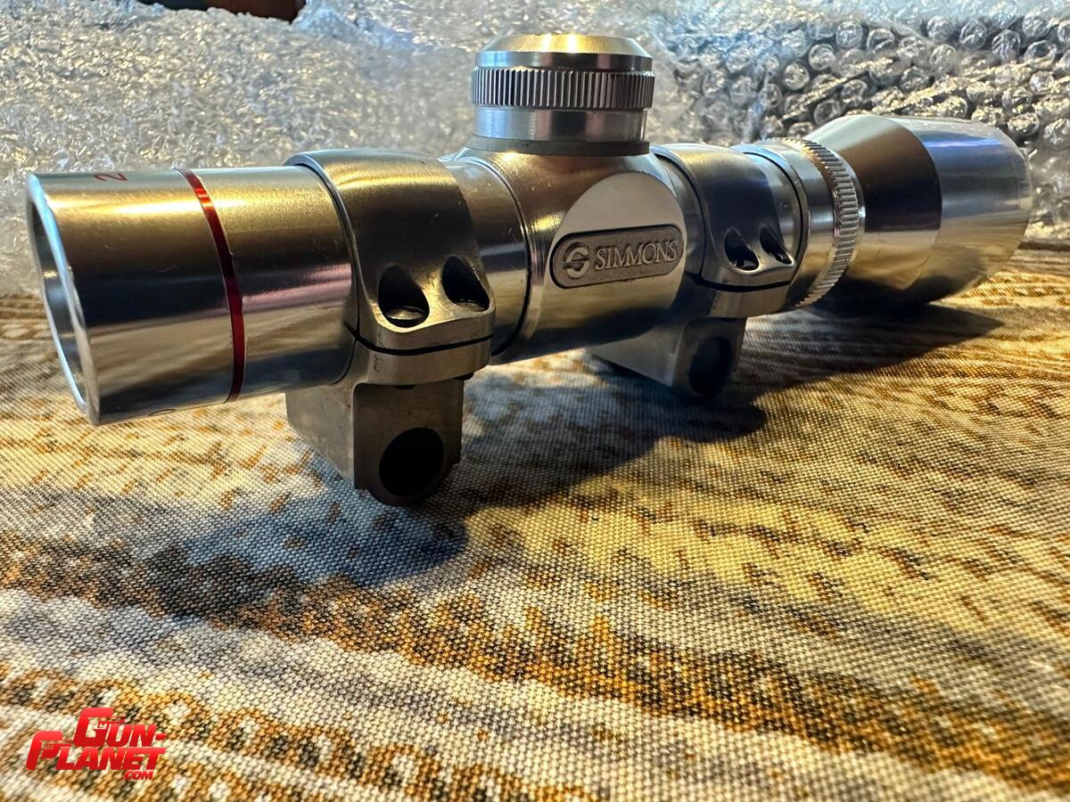 Excepcional mira Simmons japonesa 2x20 fabricada en 1989 , para arma corta apta para todo calibre incluye anillas originales ruger inox