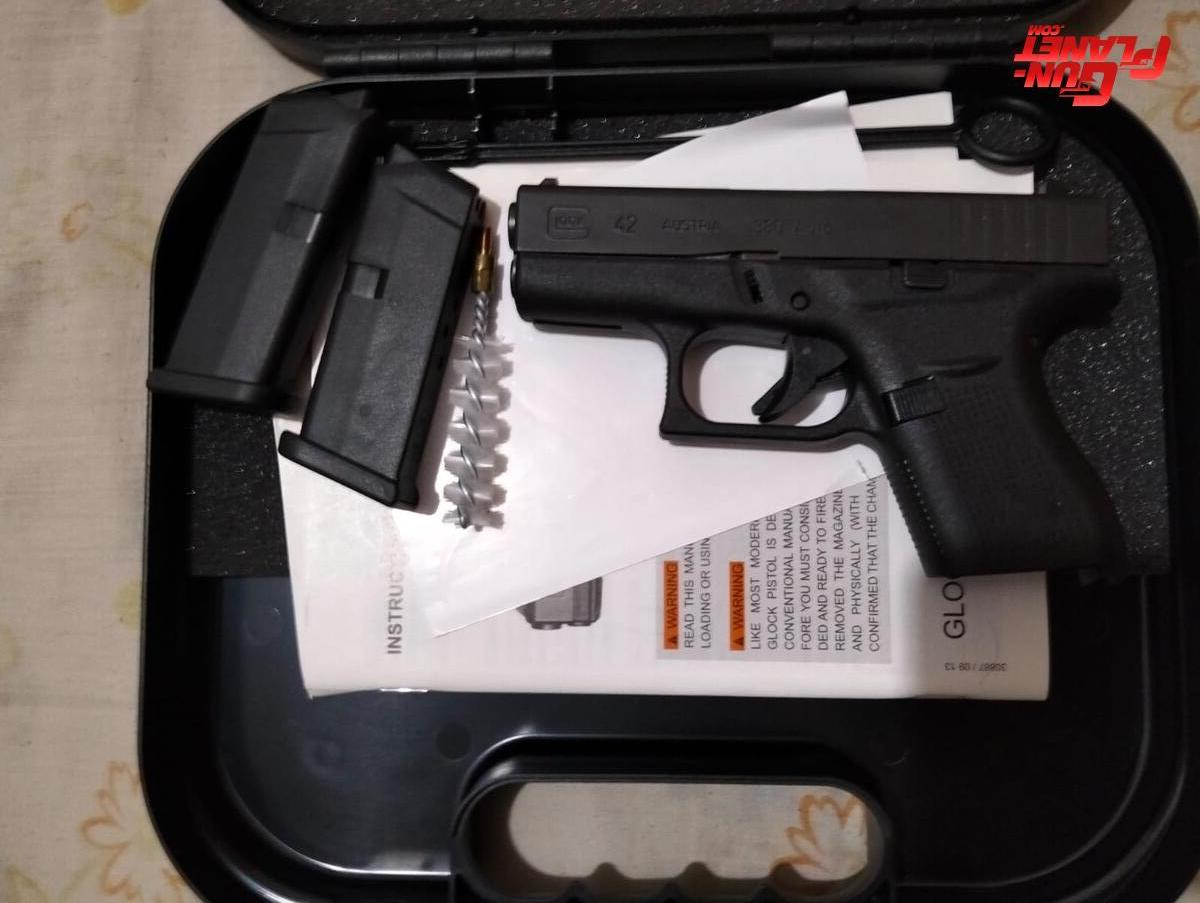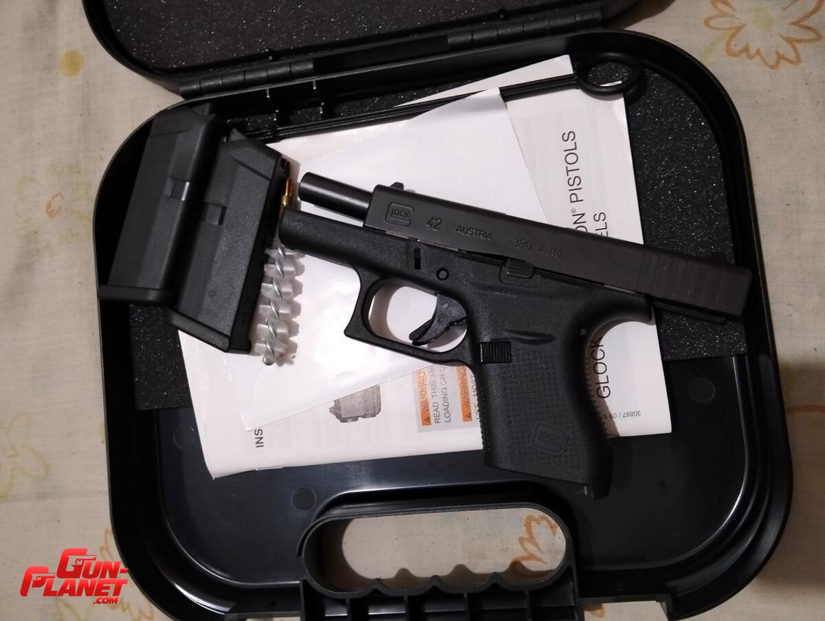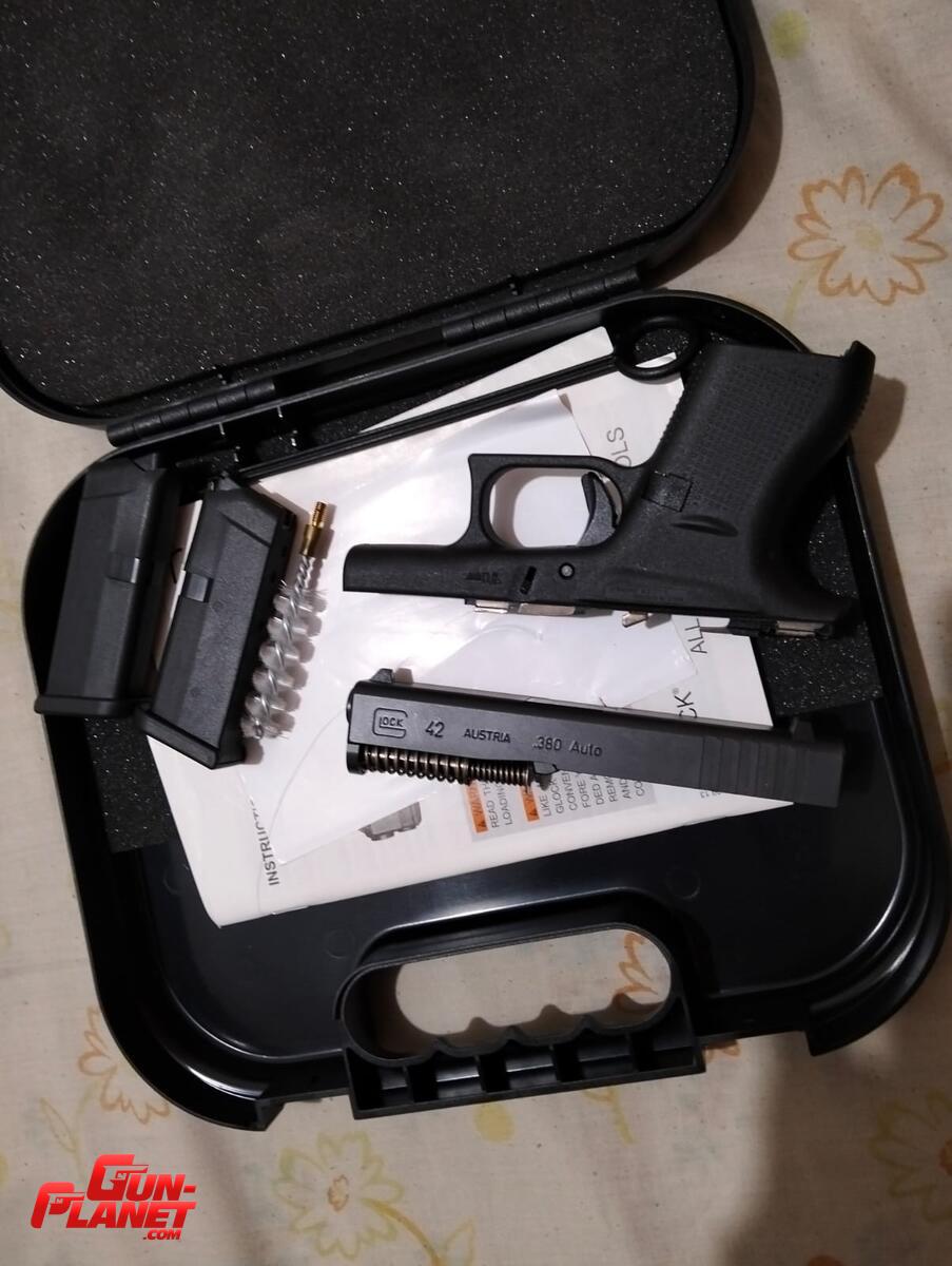 Pistola glock mod 42 G4 cal. 380ACP. En su caja original con dos cargadores, manuales y baqueta. Tiene CUIM