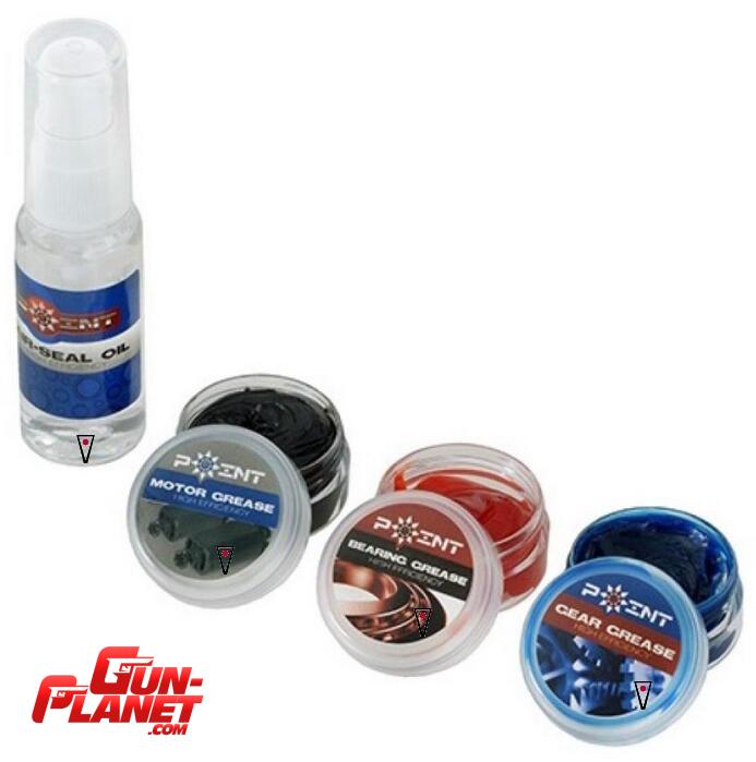 Kit de grasas para service de marcadoras: aceite siliconado, grasa motor, grasa engranajes, grasa rulemanes.