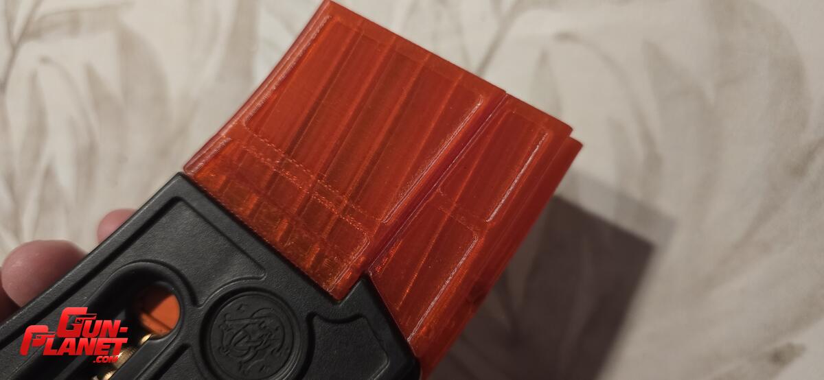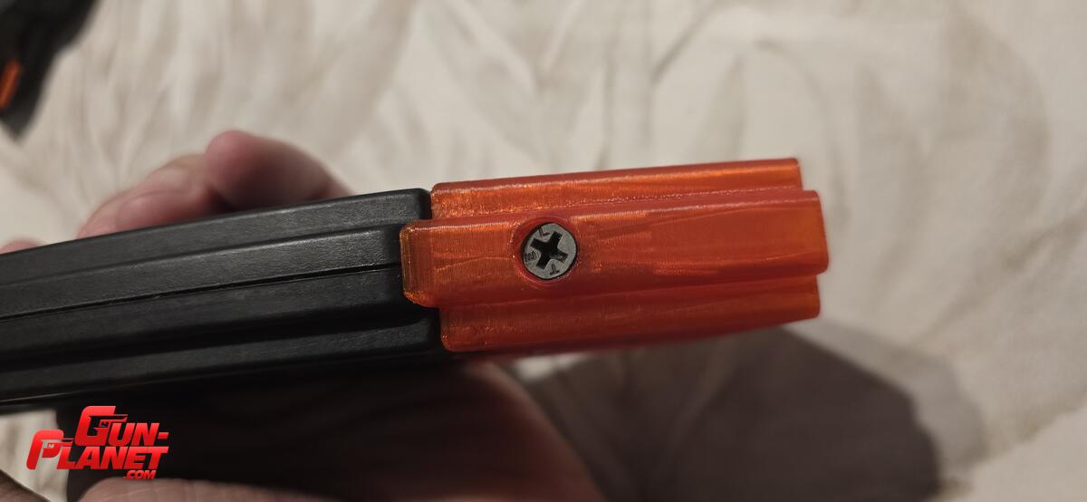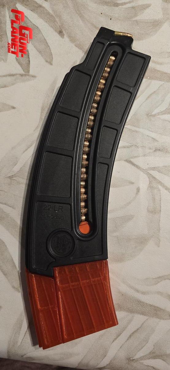 Base que permite expandir el cargador convencional de 25 rondas a 30 rondas.
