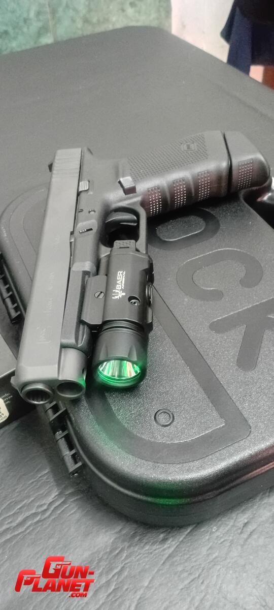 Glock 41 g4 con linterna y láser calibrada a 10 metros masomenos. Cargador de 15 y 13 tiros. Con su caja manual y todo lo que trae de fábrica. 0km. 0 tiros. Nunca fue disparada. Se entrega con trámite urgente y tarjeta azul. Vendo a 1450usd. No permuto. Solo a usuario con clu vigente de 1 año mínimo.