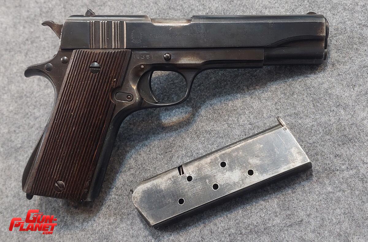 Pistola Ballester Rigaud de la famosa hispano Argentina [H.A.F.D.S.A.], calibre 45 auto, bajisimo numero de serie, referente al primer an̈o de fabricacion 1934.muy buen estado general de los metales, can̈on en muy buen estado.