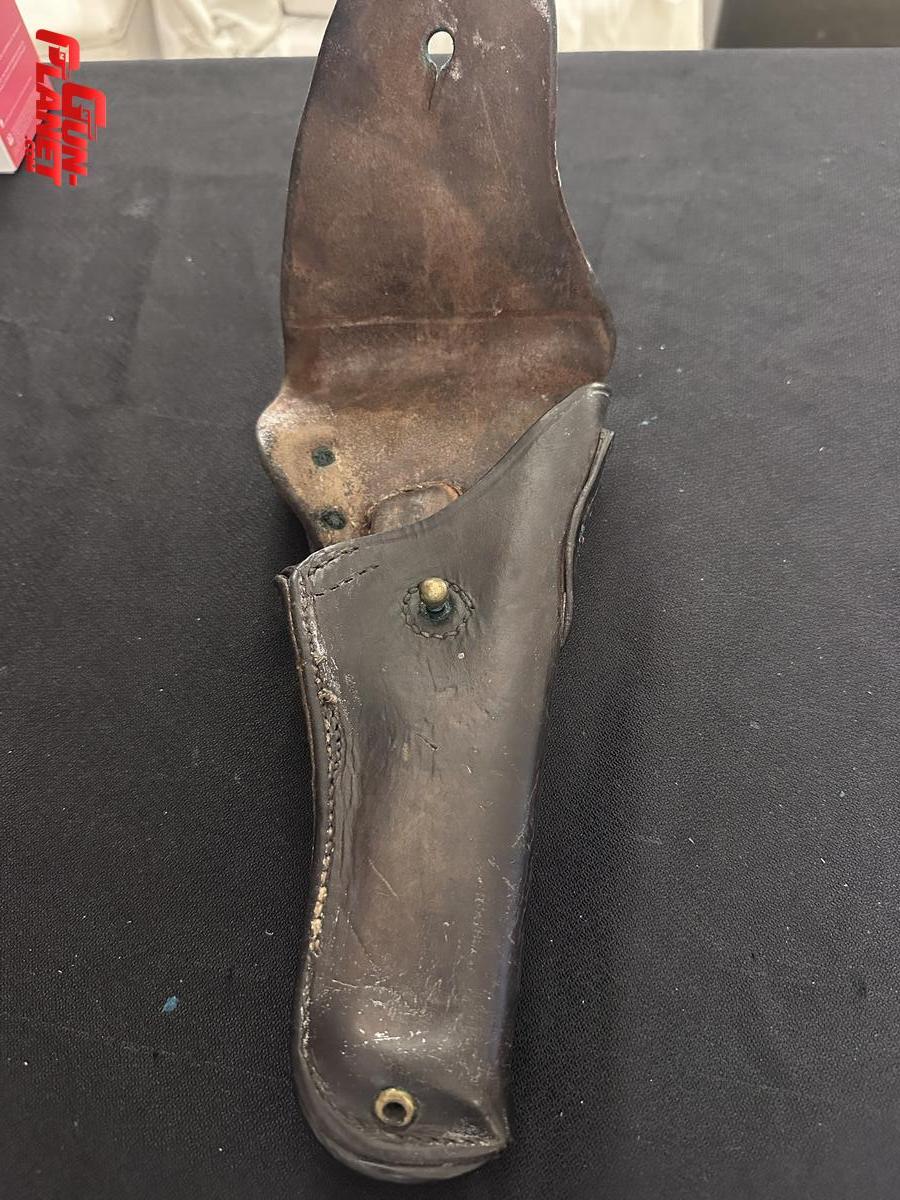 Identificación del artículo: Es una funda de cuero para la pistola militar M1911A1 calibre .45 del Ejército de los EE. UU..