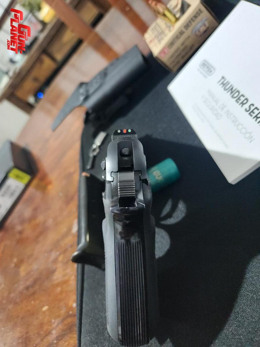 La entrego así como está con la cacha de goma y también la original de plástico.