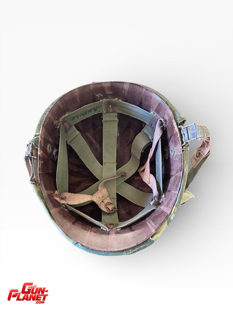 CASCO M1 ORIGINAL USA ,EPOCA VIETNAM ,FUNDA CAMO MITCHELL C/BANDA ELÁSTICA ORIGINAL 1967