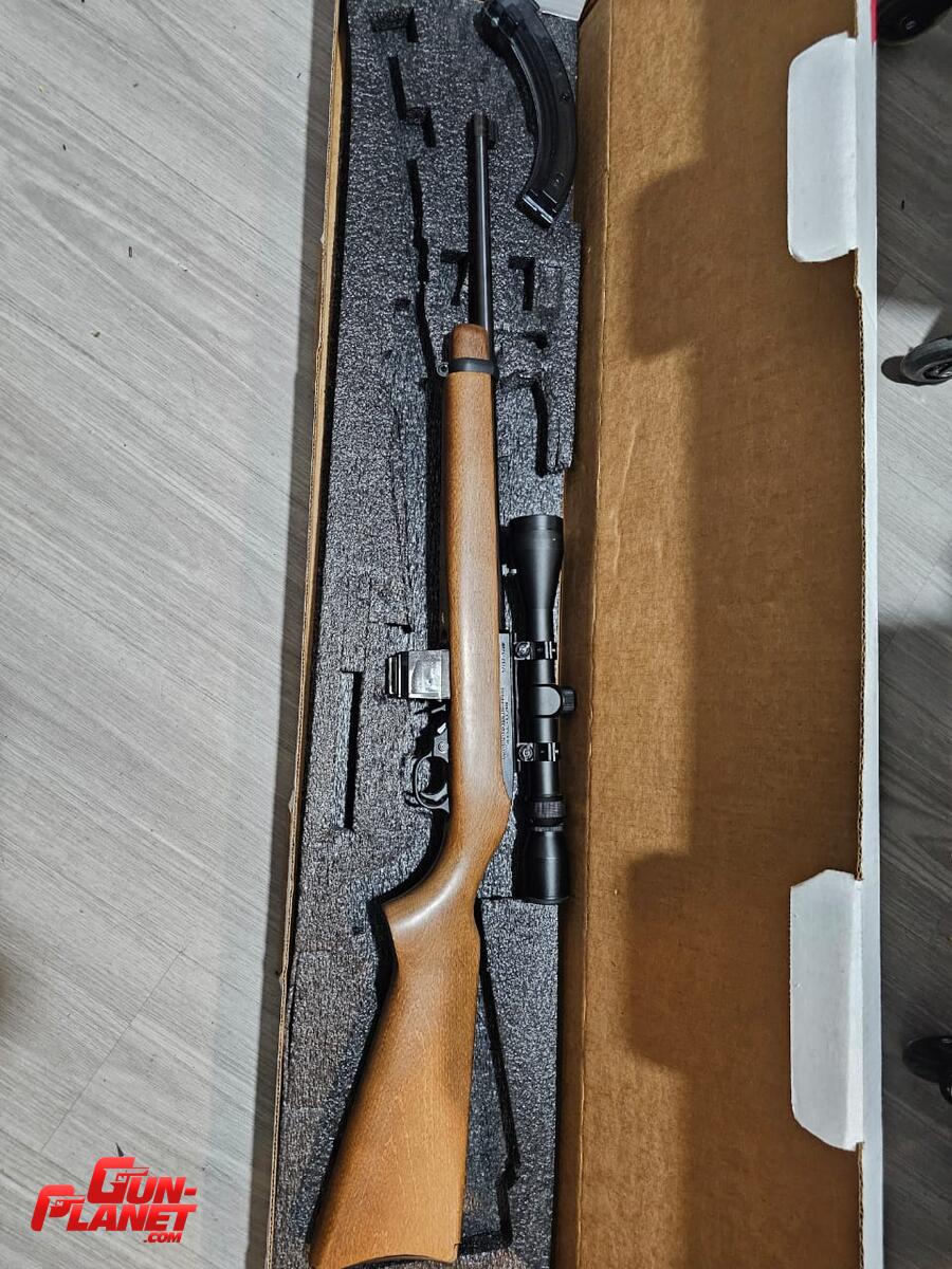 Incluye mira telescopica. Incluye 2 cargadores de 10 tiros unidos para rapida recarga, mas uno de 32 tiros usado a modo de obsequio.