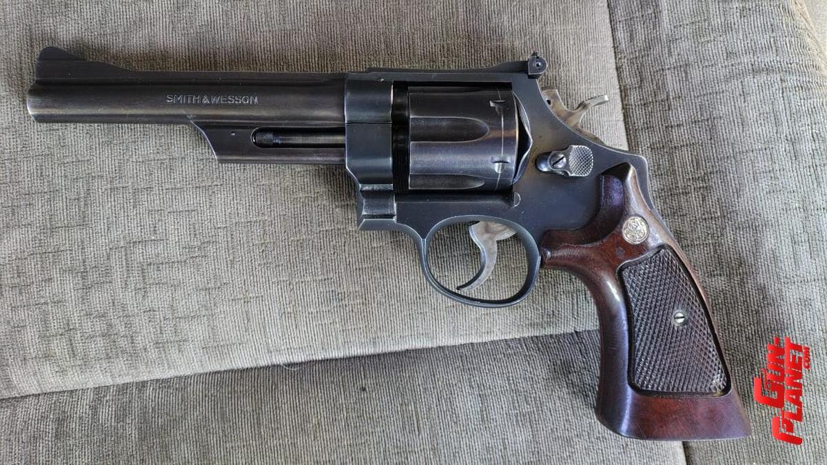 Smith & Wesson Modelo 28, conocido popularmente como "Highway Patrolman", armazón N diseñado para las fuerzas del orden y ampliamente disponible en el mercado comercial. Es valorado por su robustez y fiabilidad. El precio bajo es porque está sin cuim