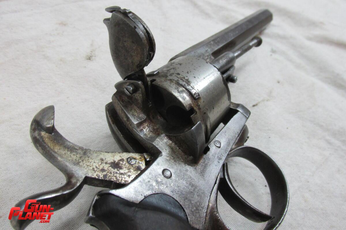 Revolver Lefaucheux belga circa 1860 cachas de nogal buenas condiciones. restos de niquelado original percuta . tornilleria original sello ELG. cal 12 lefaucheux "grande"