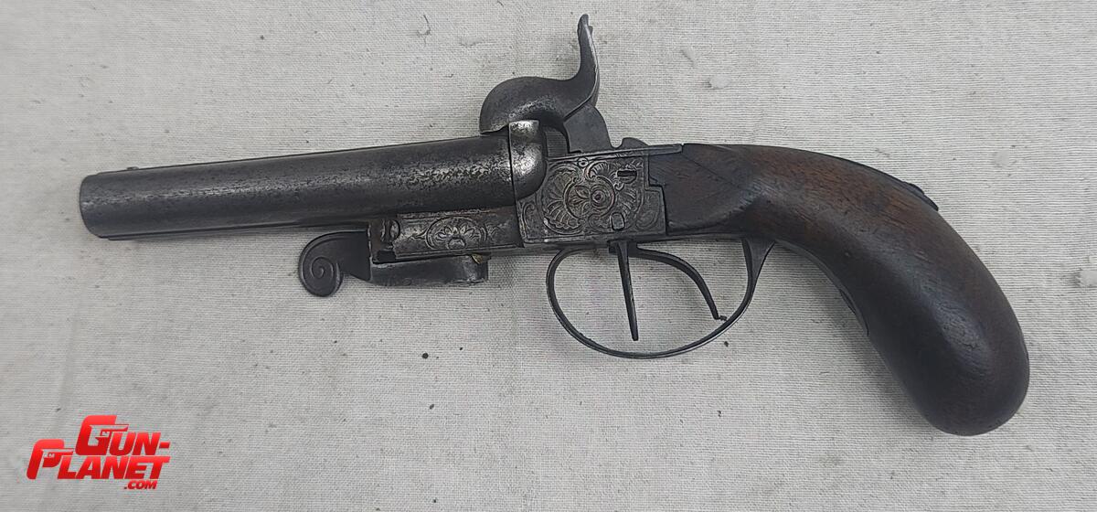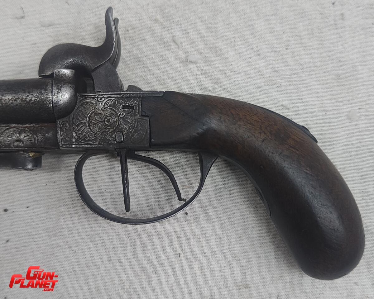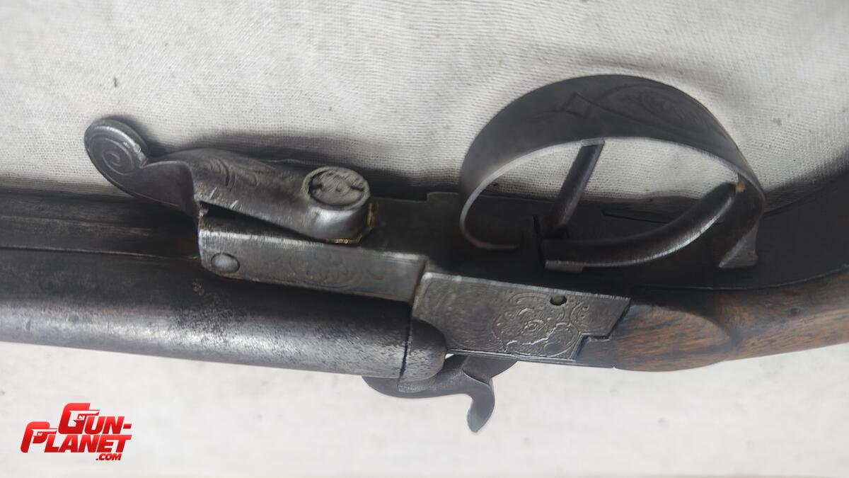 Pistola yuxtapuesta lefaucheux belga circa 1860. Funcionando. Cajón labrado y grabado. Original .