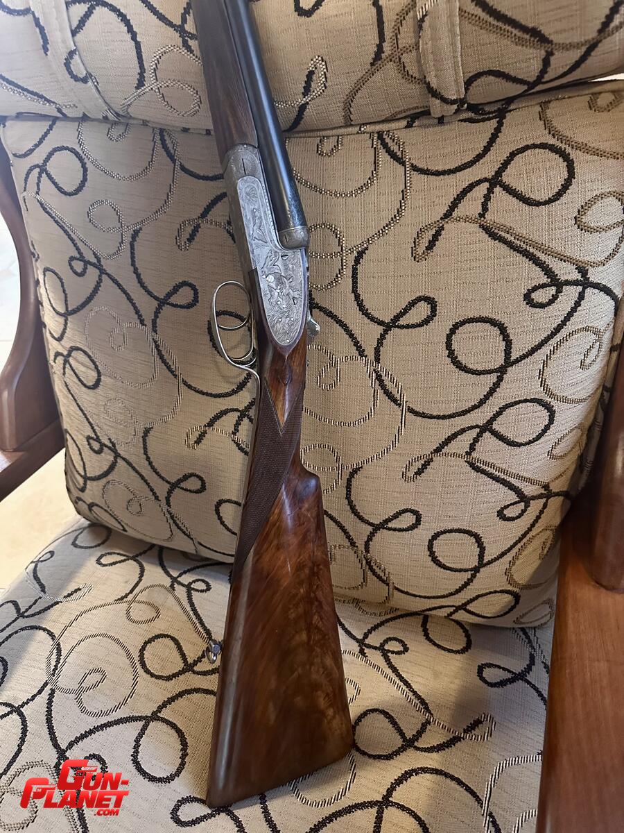 Distinguida escopeta Víctor Sarrasqueta de lujo mod 213E indicadores de disparo en oro 24 , extractores automáticos, maderas de nogal seleccionado alto grado, imágenes de caza hechas a mano