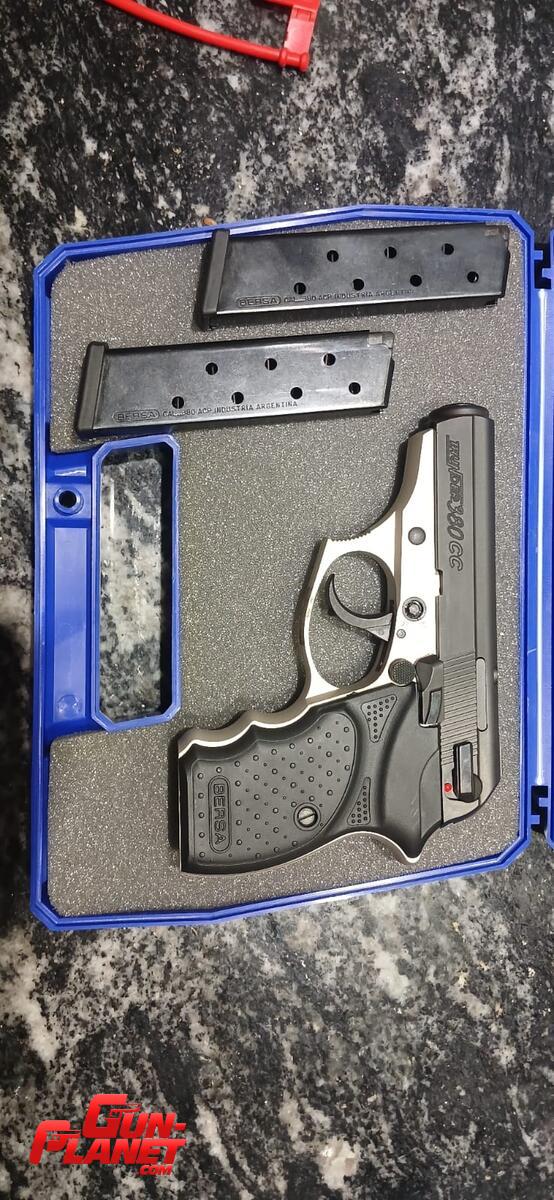 En caja con sus 2 cargadores, manuales y llave de seguridad.Se va con una caja de magtech 50u, y Guardián gold de 20u