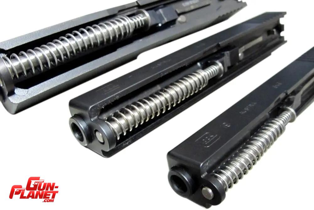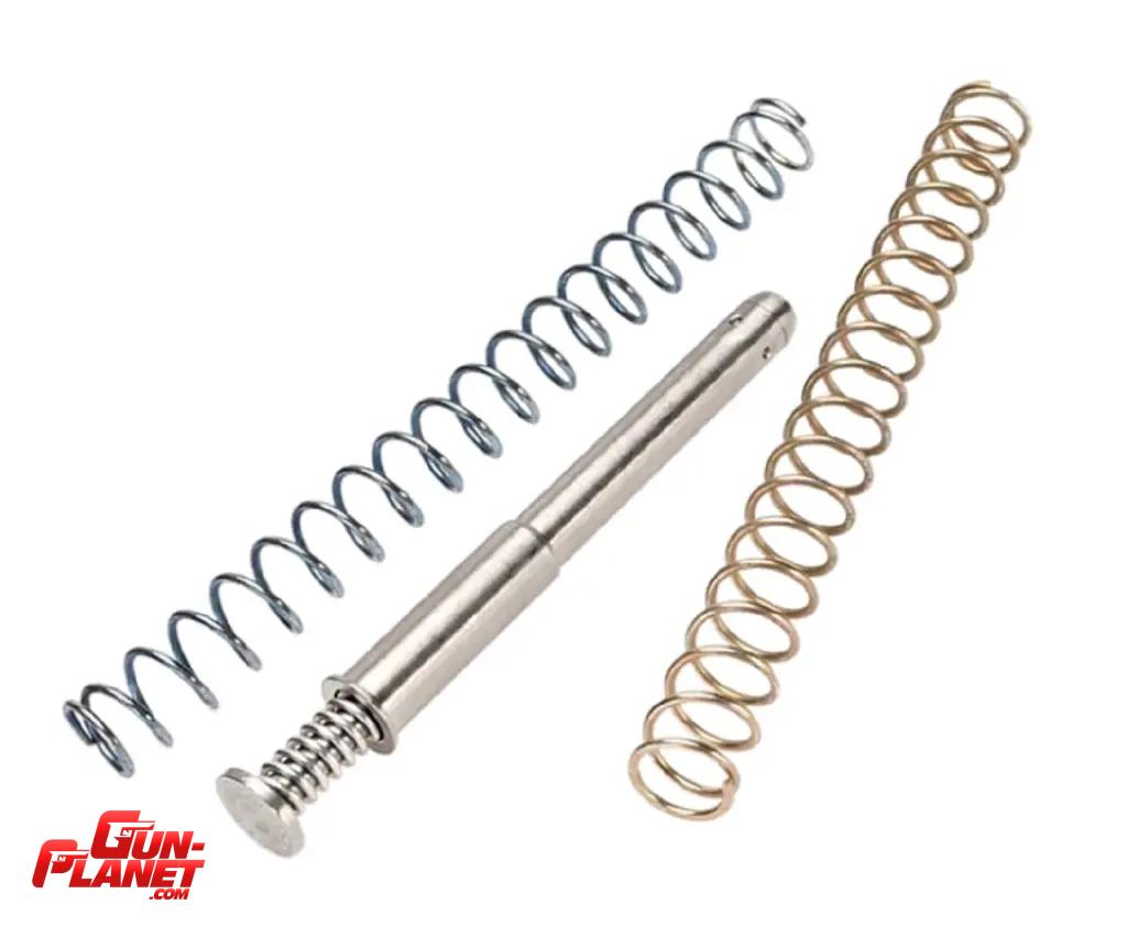 Este sistema funciona debido a la varilla compleja de múltiples muelles (tres muelles) y controla la funcionalidad de la pistola. El