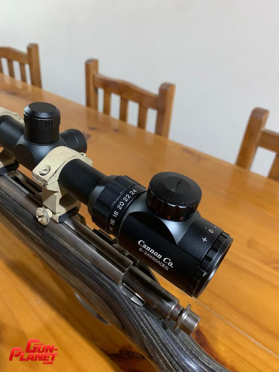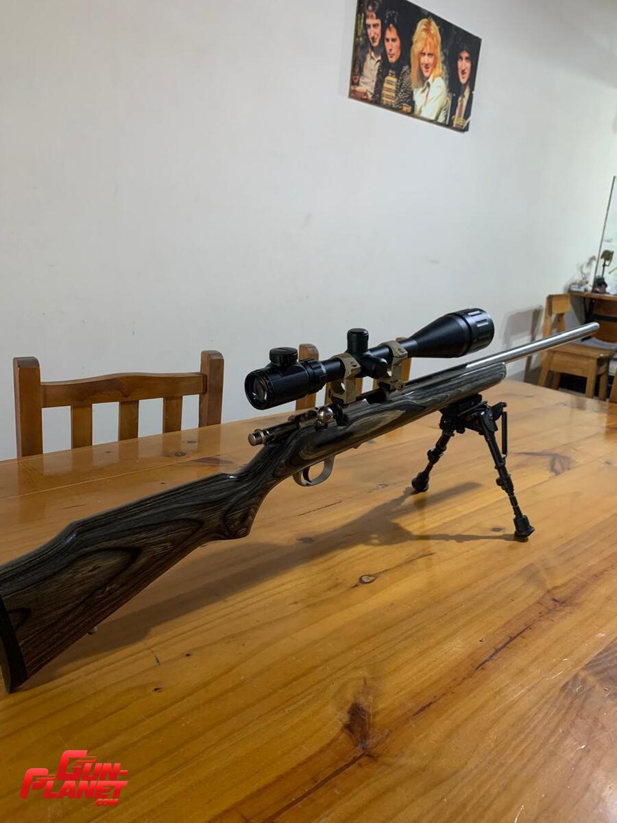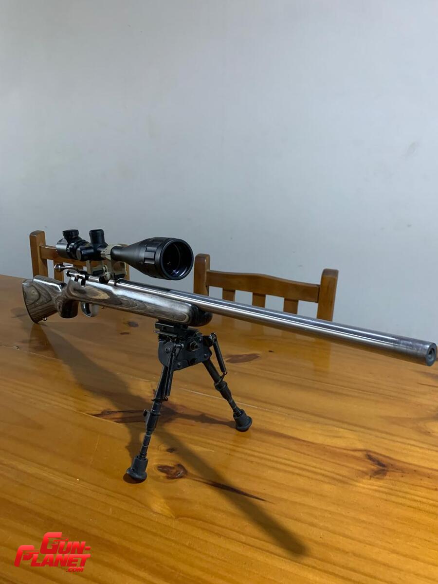 Carabina Marlin calibre 17 hmr Bull barrel inoxidable y culata laminada con mira telescópica cannon 6-24x50 literalmente nueva tiene 300 tiros aproximadamente.