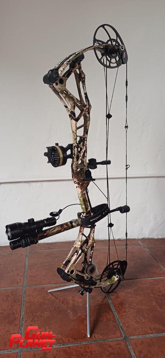 Bowtech Realm 60/70# RH, realmente muy poco uso,(sin accesorios U$870) con mira Spot Hogg microregulable de 5 pines, Rest QAD HD, estabilizador Octane, peep sight y loop colocados (U$1250)