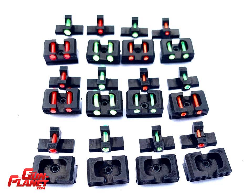 2 juegos disponibles, alza ciega con fibra en el guion o alza y guion con fibra