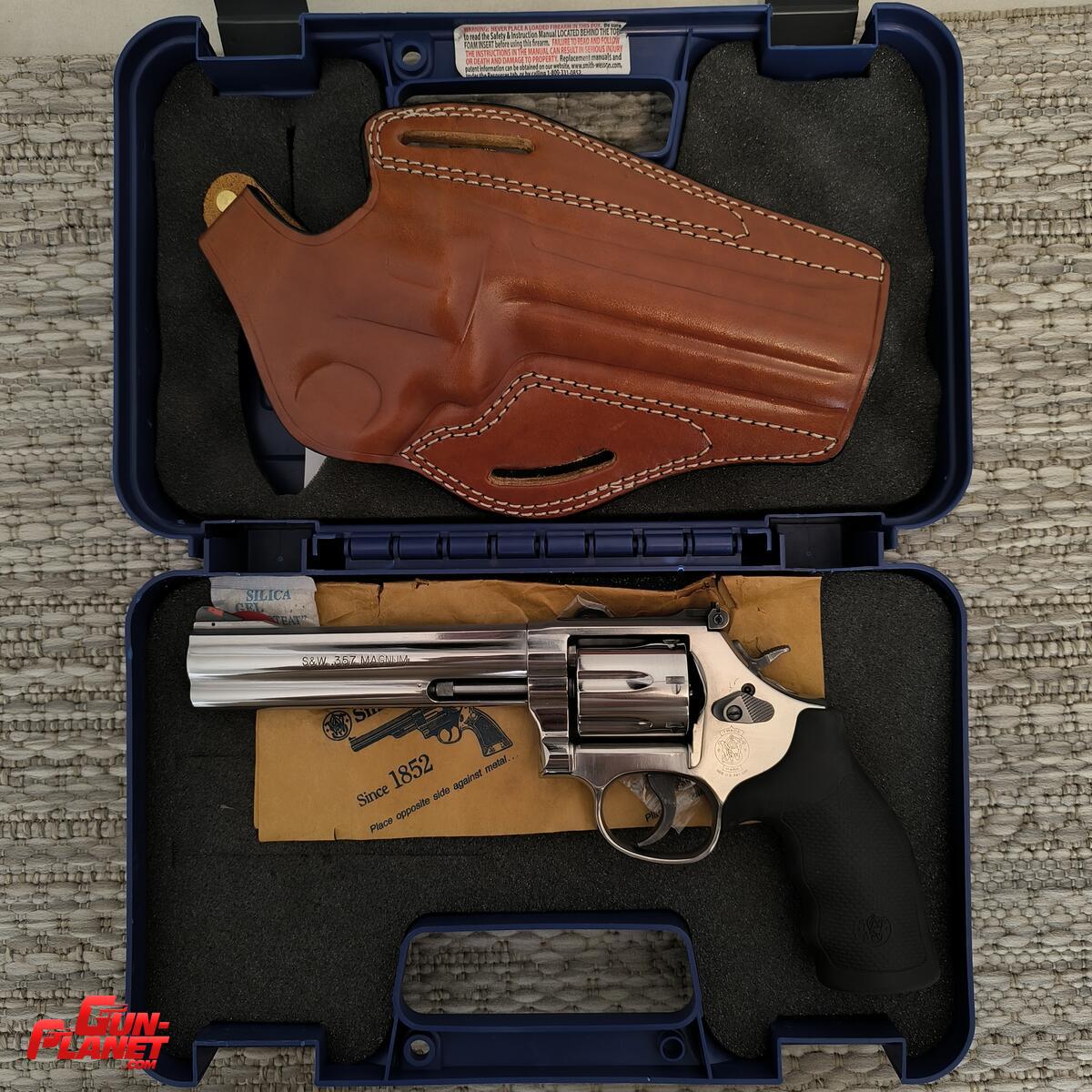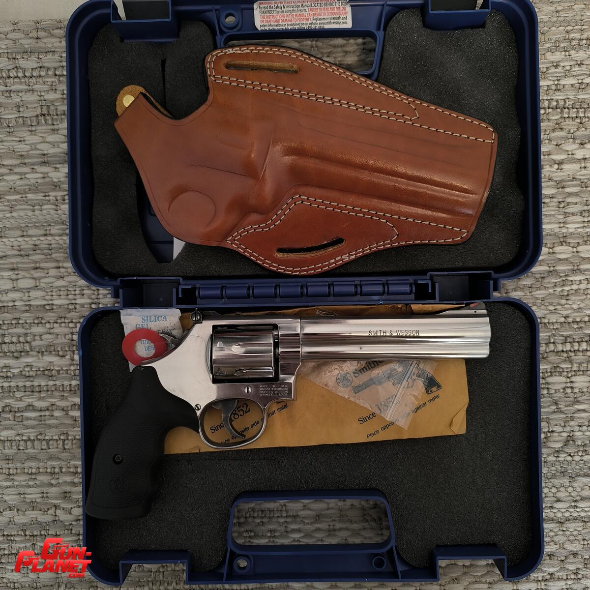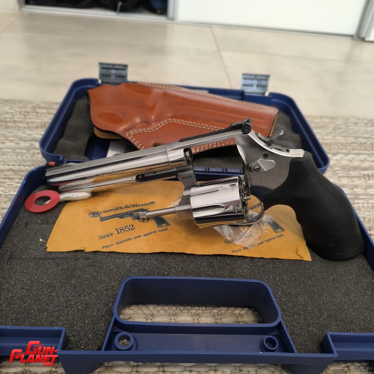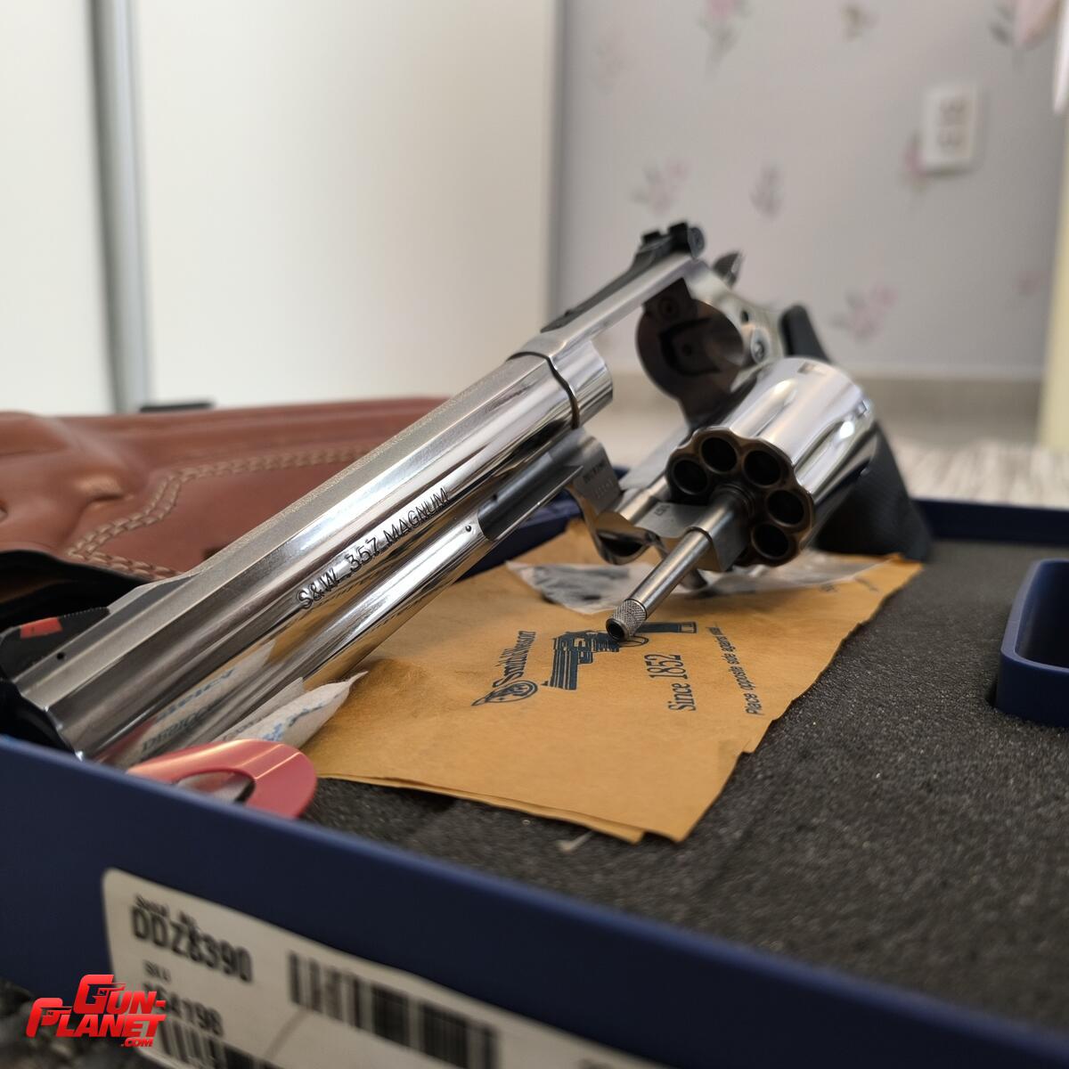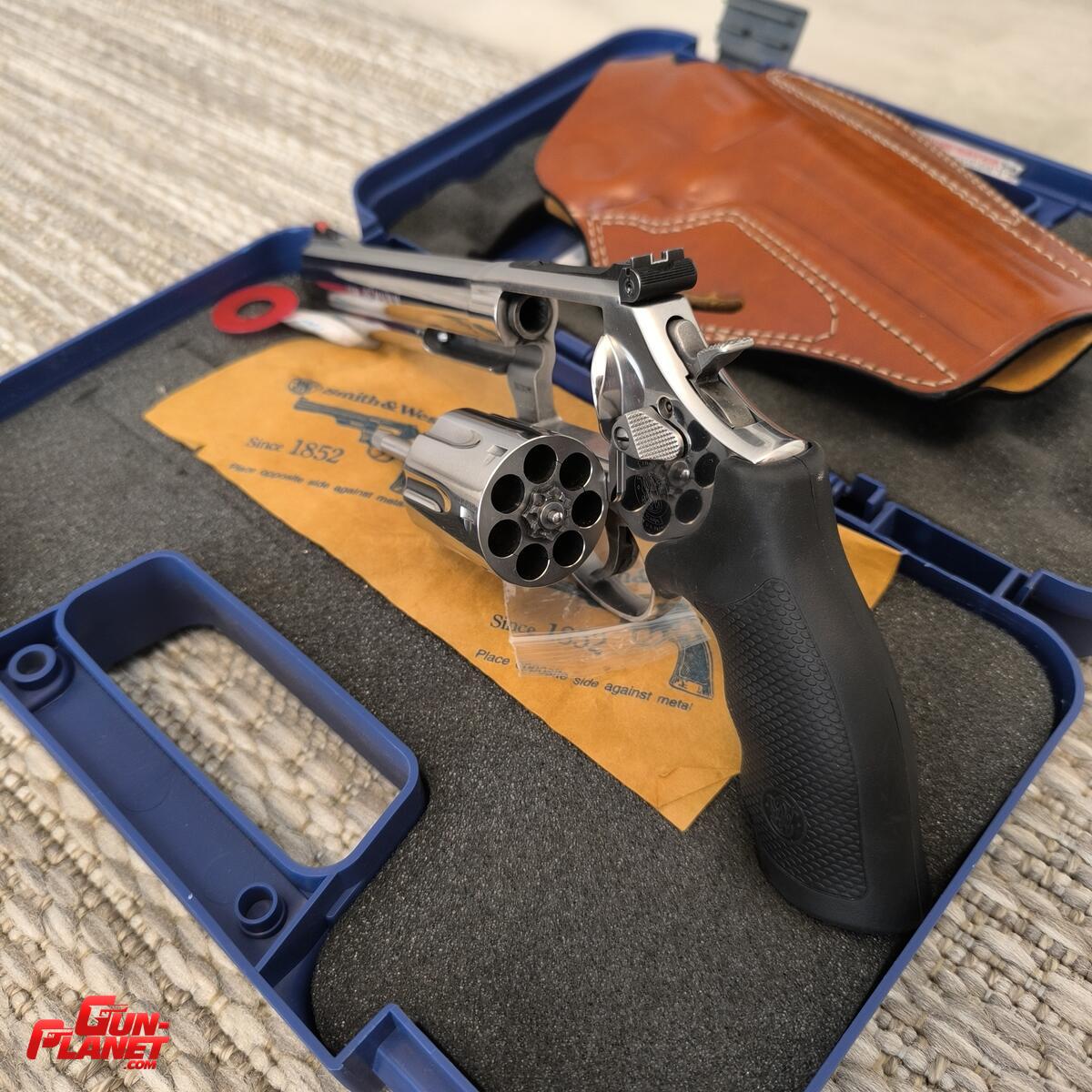 Caja original con todos sus manuales y accesorios. Incluye funda de cuero específica para ese modelo y largo de caño.