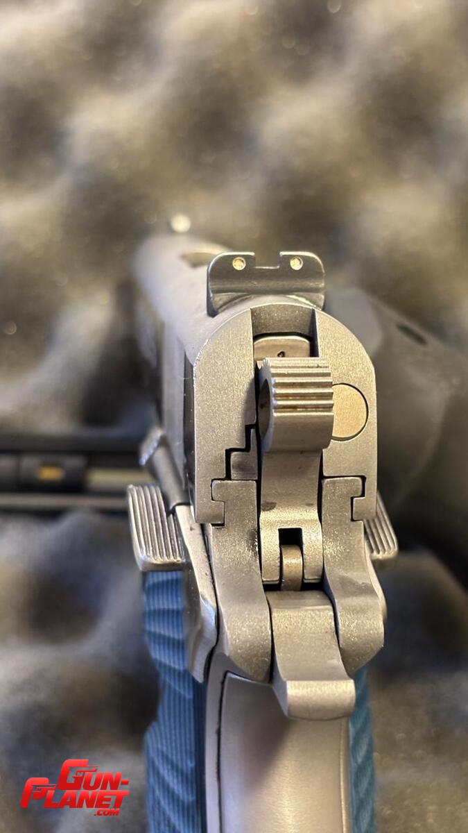 Con kit muelle, resortes, martillo skeleton, seguro ambidiestro, full guide rod, todo Wilson Combat. Cachas G10 y originales Hogue