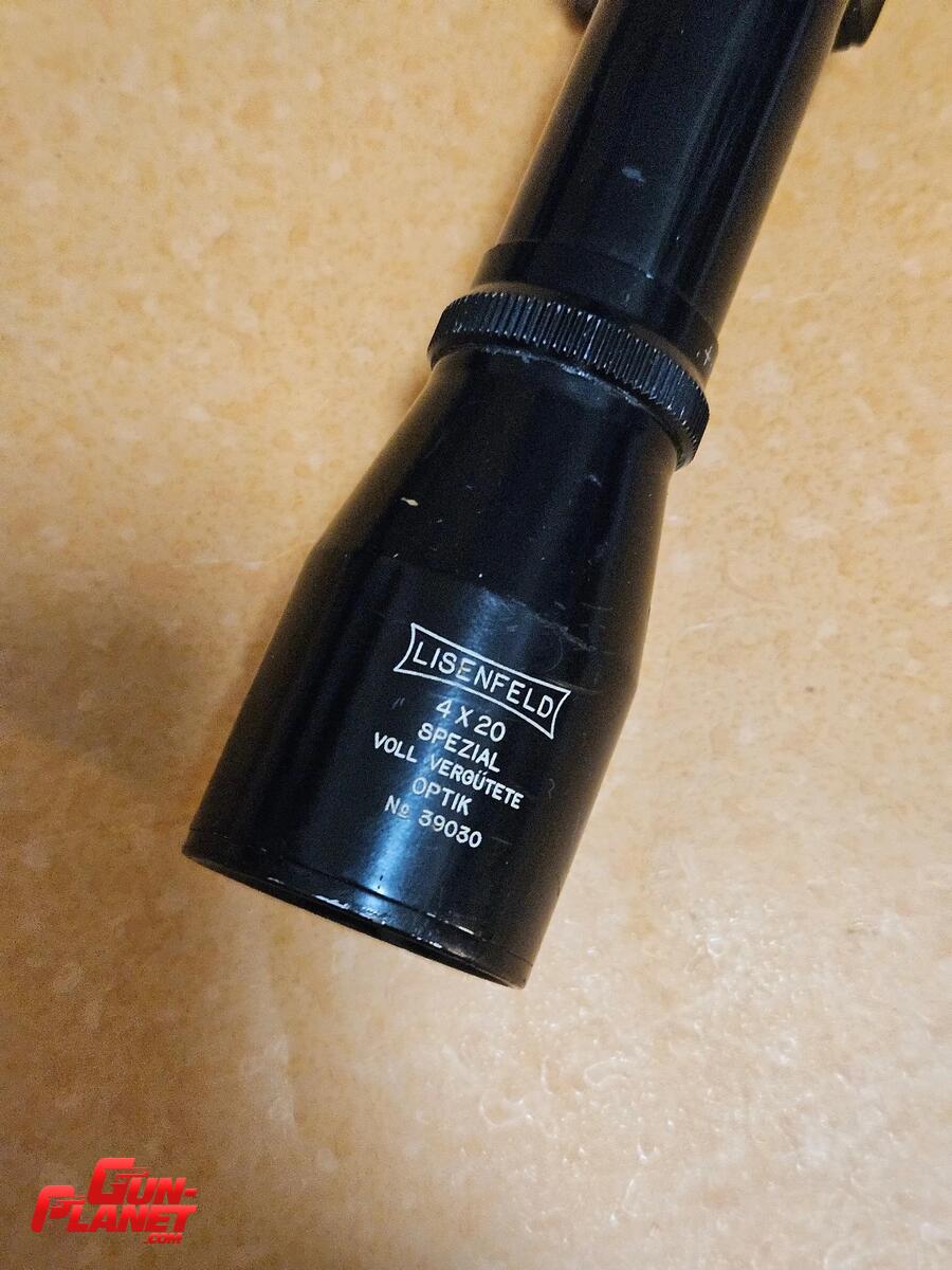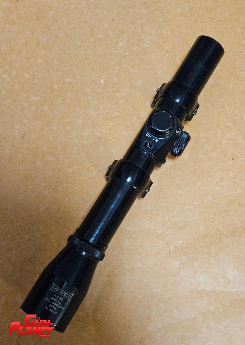 Mira alemana lisenfeld 4x20 tubo 1 pulgada reticulo 1 no autocentrante. Incluye anillas de epoca tambien origen aleman, para riel 11mm.