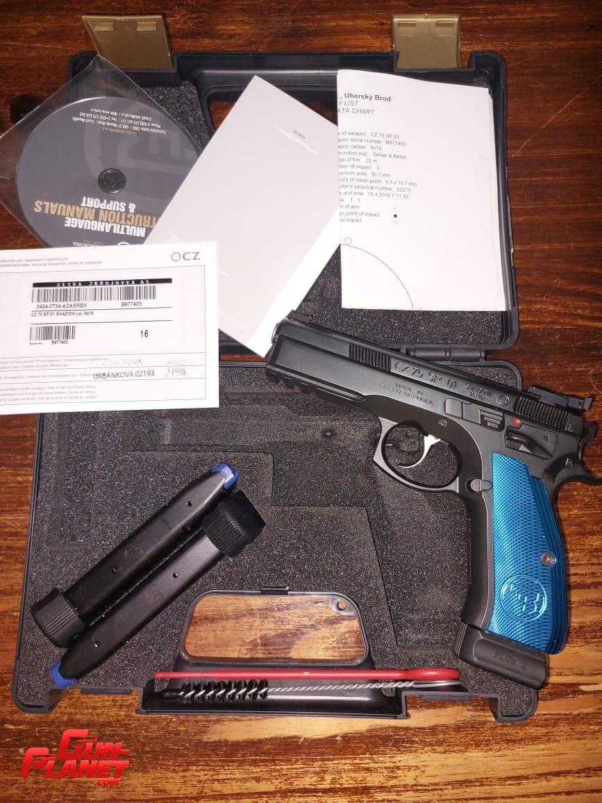 CZ 75 SP01 Shadow, prácticamente nueva, con caja original, 3 cargadores originales (2 sin uso) con bases + 2 , baqueta, cepillo de limpieza, manuales, CD, etc. (Tal cómo viene de fábrica) y con los siguientes accesorios instalados