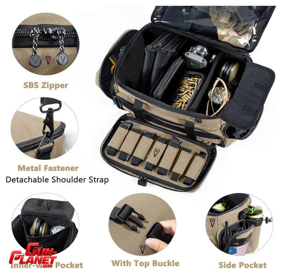 Incluye: bolso, separadores, fundas de pistola, correa hombro.