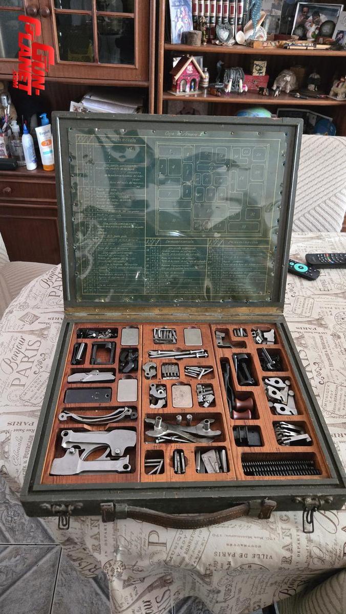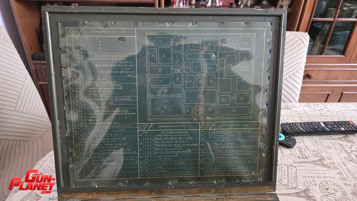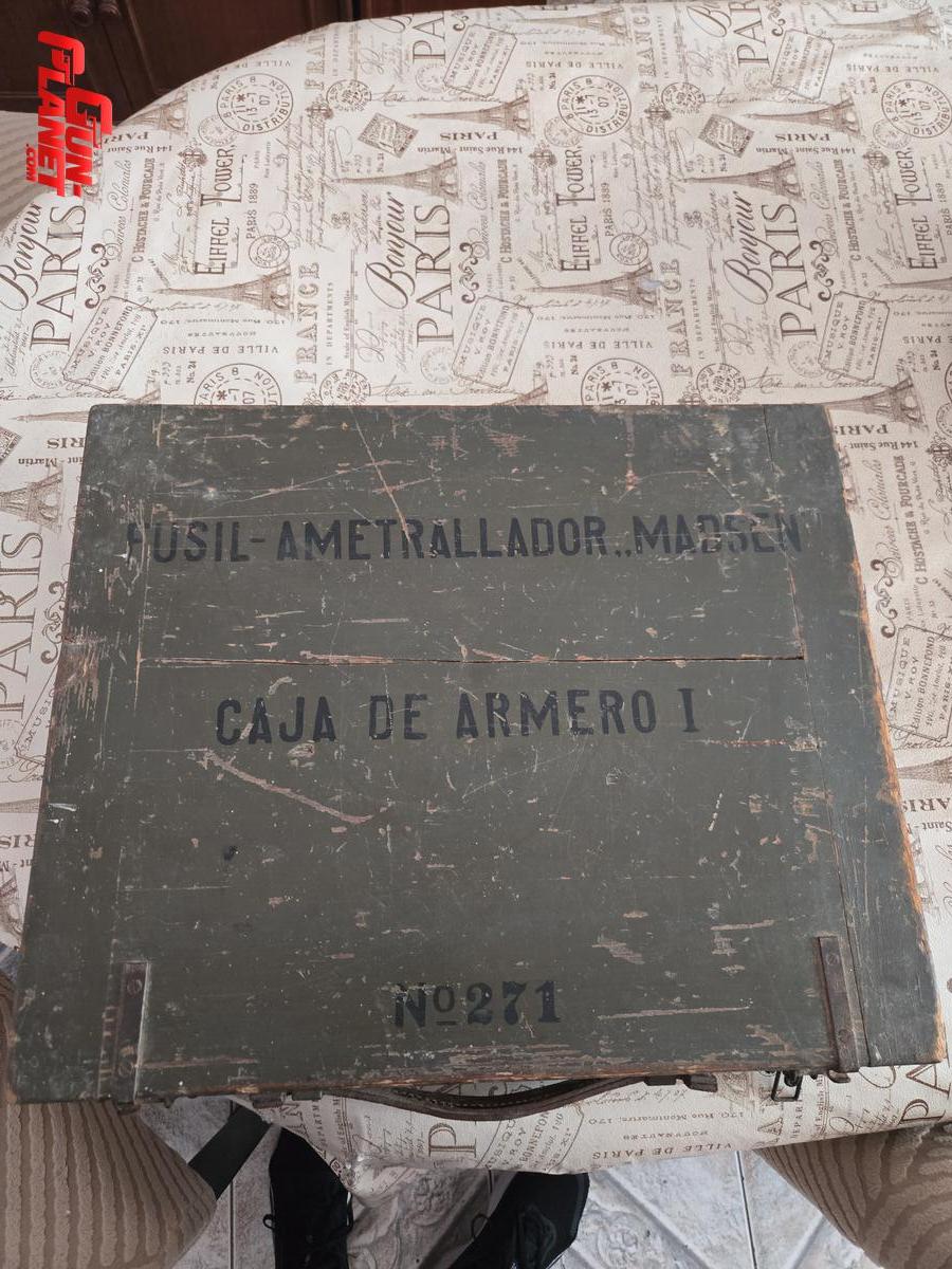 Antigua caja de repuestos de fusil ametrallador madsen.
