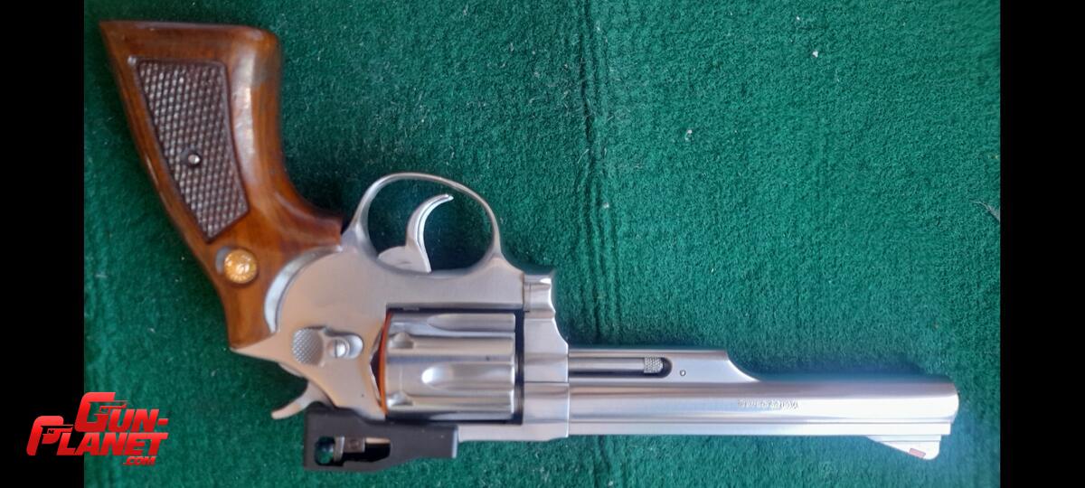 REVOLVER TAURUS MODELO 66, ACERO INOXIDABLE, DOBLE ACCIÓN, CAÑO DE 6 PULGADAS Y ALZA REGULABLE. FABRICADO APROXIMADAMENTE EN 1991, LA MEJOR ÉPOCA DE TAURUS. TIENE CUIM. ESTÁ EN IMPECABLE ESTADO Y CON MUY POCO USO.