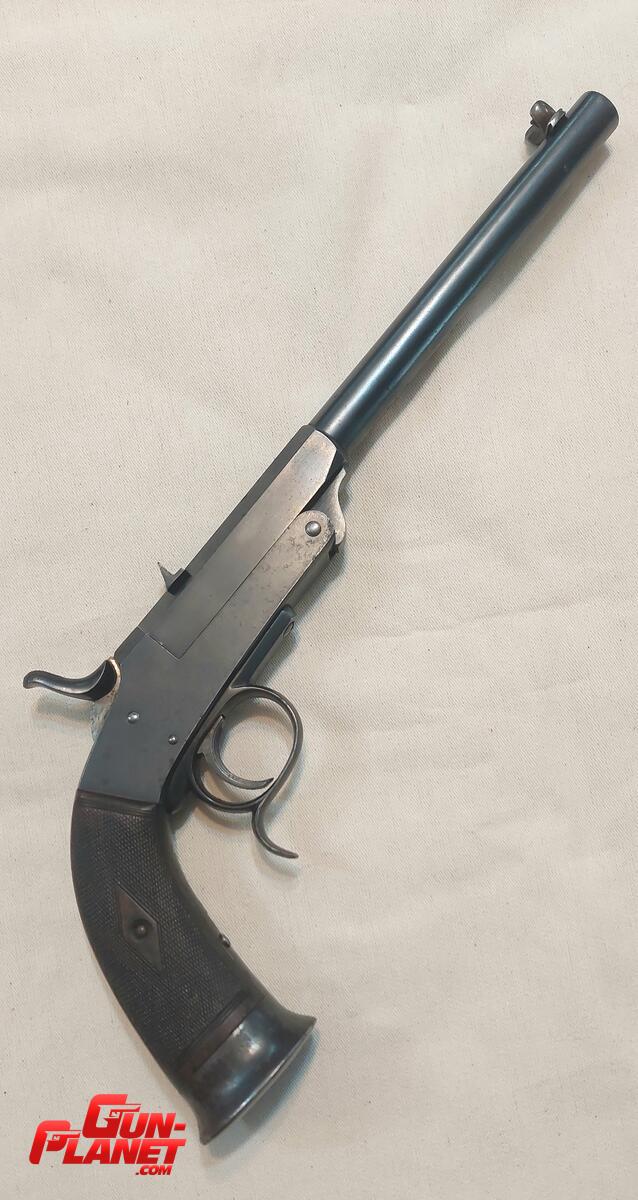 Excepcional pieza para coleccionar, pistola monotiro calibre 22 corto, de origen belga en optimas condiciones de funcionamiento.