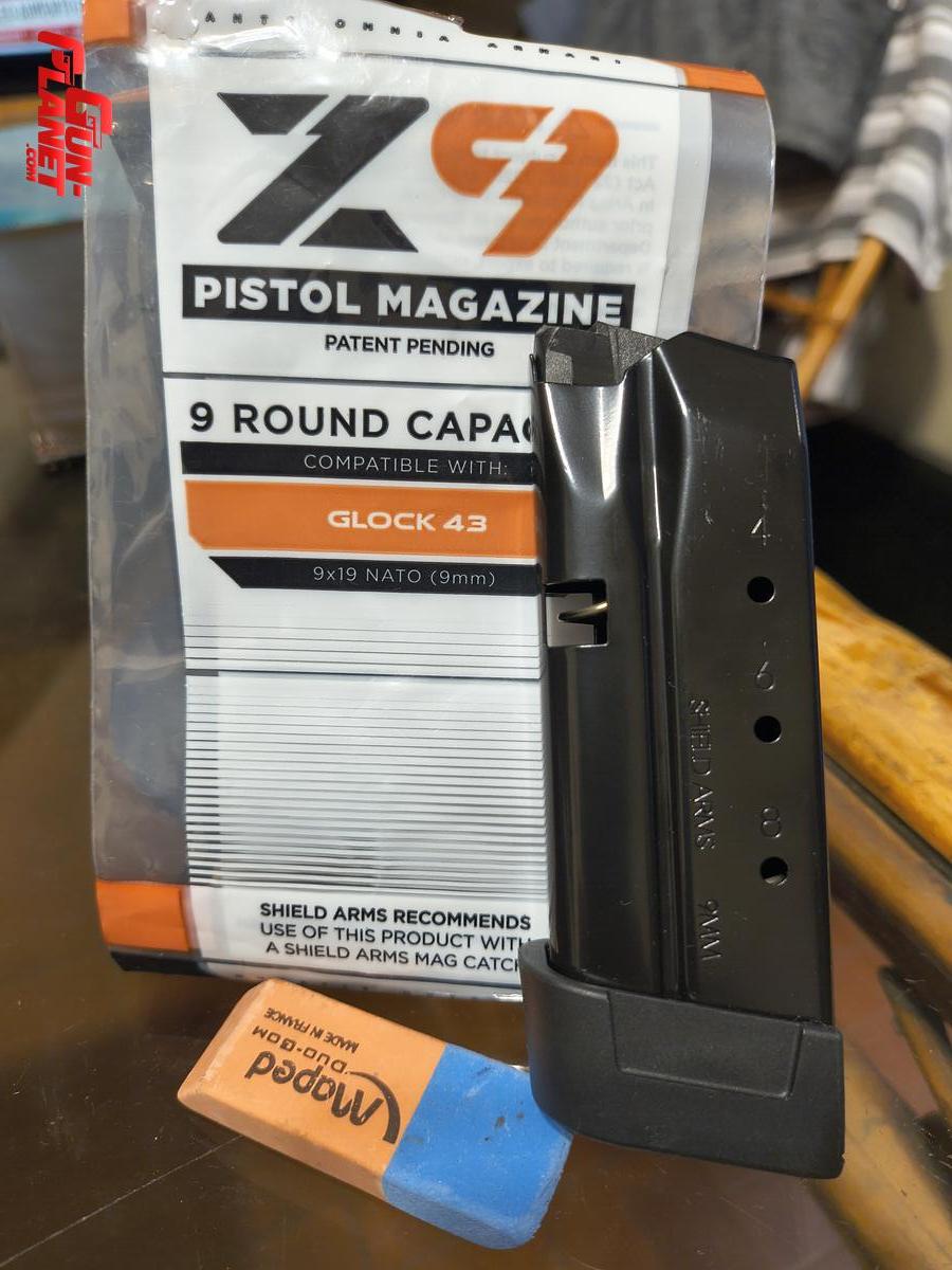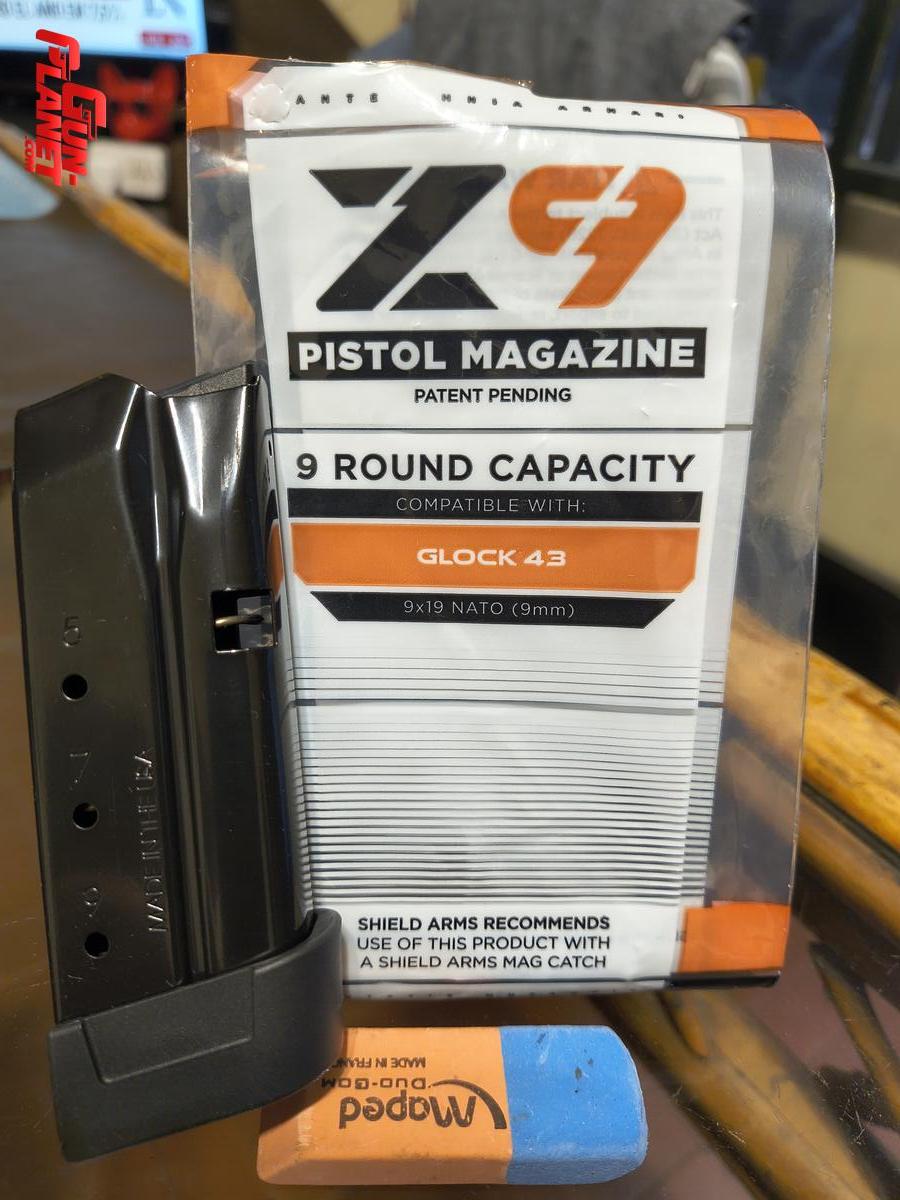 CARGADOR NUEVO PARA PISTOLA 9 MM GLOCK 43. (NO 43X) MARCA SHIELD ARMS, MODELO Z9 DE 9 RONDAS. MADE IN U.S.A.