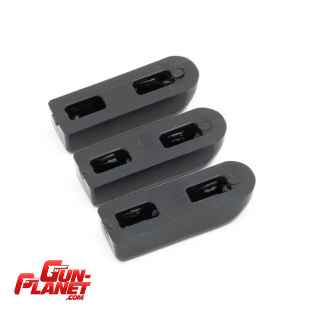 Sistema de Instalación "Glue-On": Diseñada específicamente para cargadores que no tienen agujeros pre-perforados para tornillos. Se instala mediante el uso de adhesivos industriales (como cianoacrilato o epoxi), lo que la hace compatible con una amplia variedad de marcas de cargadores 1911.