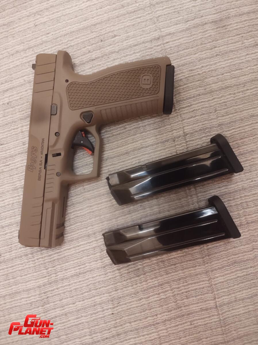 Pistola Bersa BP 9 FS (17+1) viene con su caja original, manual, garantía. Posee 3 cargadores originales. Pocos disparos (180 factory) muy pegadora, cañón pintado con epoxi, adjunto blancos a 8/9 mts (50 tiros) mas una funda interna Boer de polímero ajustable.